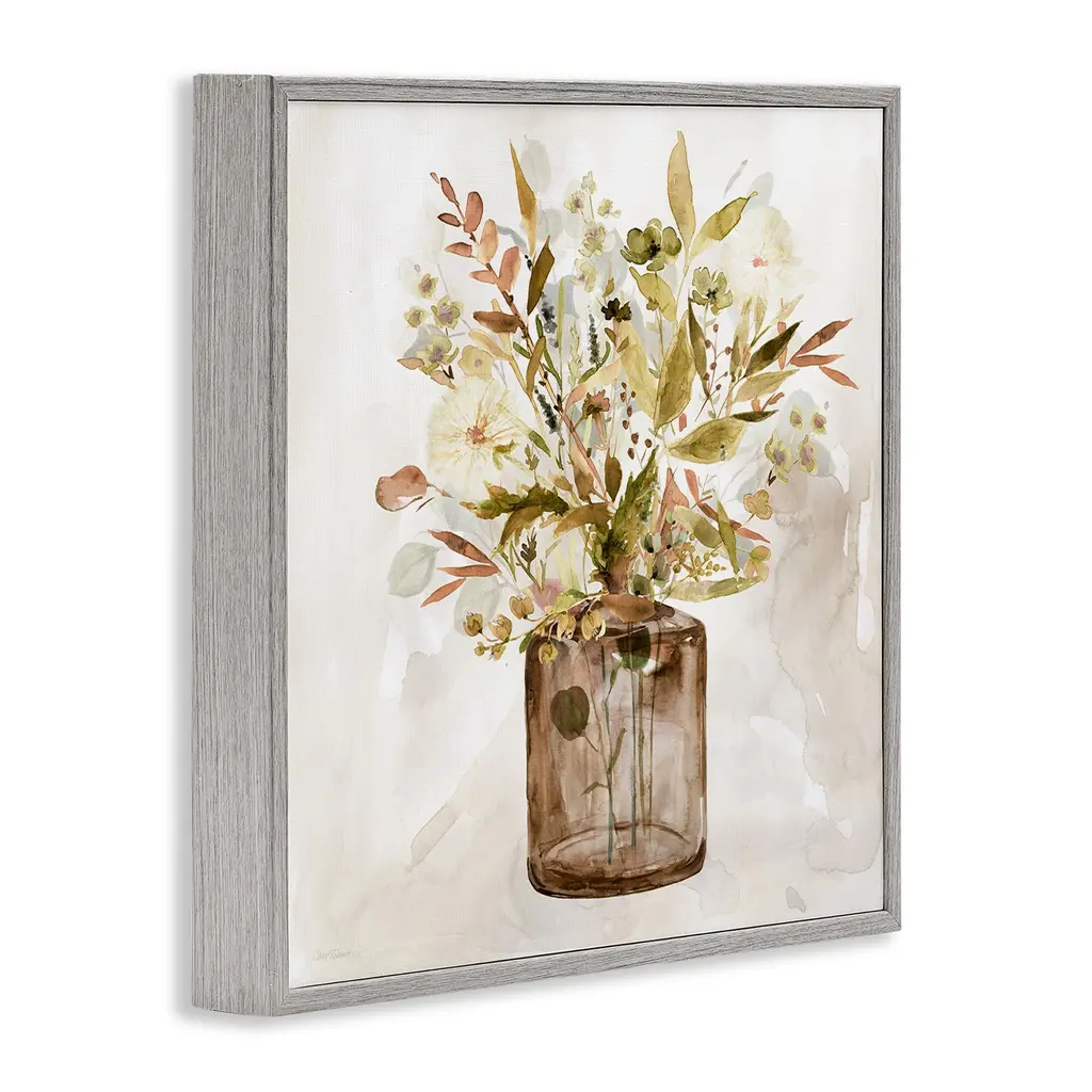 Our Framed Giclee Wall Art adds a touch of class to any space in your home or office. Frames are available in three alluring styles: black, gray farmhouse and white. Our textured artwork will add more depth and dimension to any space. Each piece is mounted with a 1.5 inch thick wood grain frame that is ready to hang! Looking for a statement piece? We have oversized artwork available.Features: Wall Art is Ready to Hang - No Installation or Hardware Needed. For Easy Set Up Lean or Layer Artwork on Shelf or Against Wall.Our giclee prints are carefully mounted on a durable MDF backing, and then perfectly finished in a 1.5 inch thick woodgrain frame. Mounted frame colors include black, gray farmhouse and white. Made In USA.Artwork Relates To: Jar; Vase; Plant; Flower; Blossom; Flower ArrangementDesign by Carol Robinson