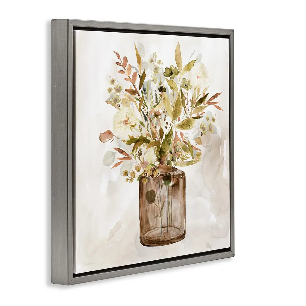 Elevate your home or office to the next level with Stupell Framed Floating Canvas Wall Art. Our premium hand-stretched canvas is mounted securely into a sturdy lightweight frame. The museum-style gap between the wrapped canvas and the box frame gives the illusion of floating artwork. Stupell Wall Art is made in the USA.Features: Dimensions: 18 x 1.7 x 18 Frame, 17 x 1.5 x 17 Canvas ArtFloating Frame Canvas Products are available in sizes 18"x18" and 25"x25". All Floating Frame Canvas Products have a 1.7" Depth.Wall Art is Ready to Hang with Hardware Free Hanging. No Installation required. For Easy Set Up Lean or Layer Artwork on Shelf or Against Wall. Artwork is Permently Fixed into the Frame.Our elevated 1.7" Thick Floating Frame is the perfect complement to our canvas style Wall Art. We use only the highest quality inks in house with industry leading printing solutions. Canvas is hand stretched over a durable wood foundation and then mounted securly into a Modern Box Frame. Made in the USA.Artwork Relates To: Vase, Plant, Flower, Blossom, Bouquet, BotanicalDesign by Carol Robinson