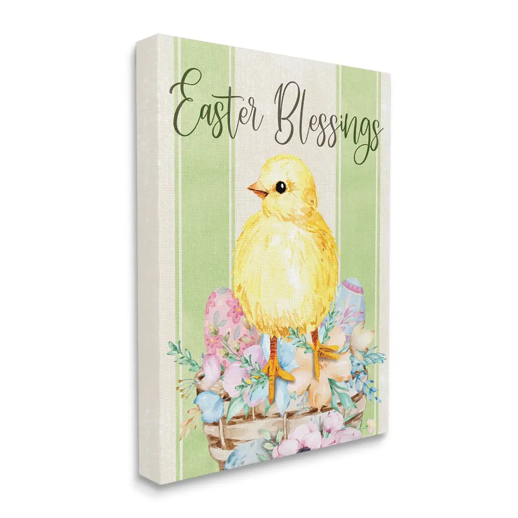 Stupell Easter Blessings Text Striped Yellow Chick Egg Basket Canvas Wall Art - 16 X 20