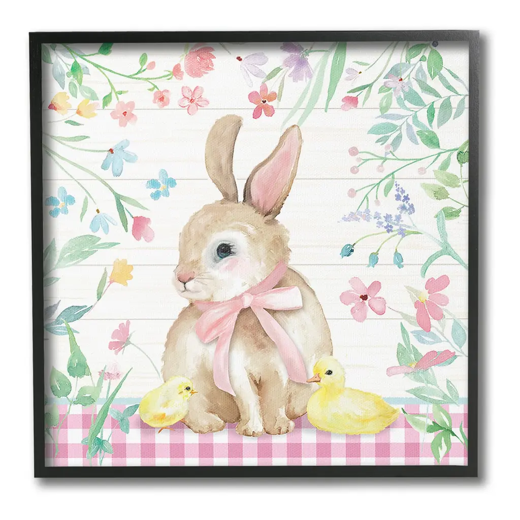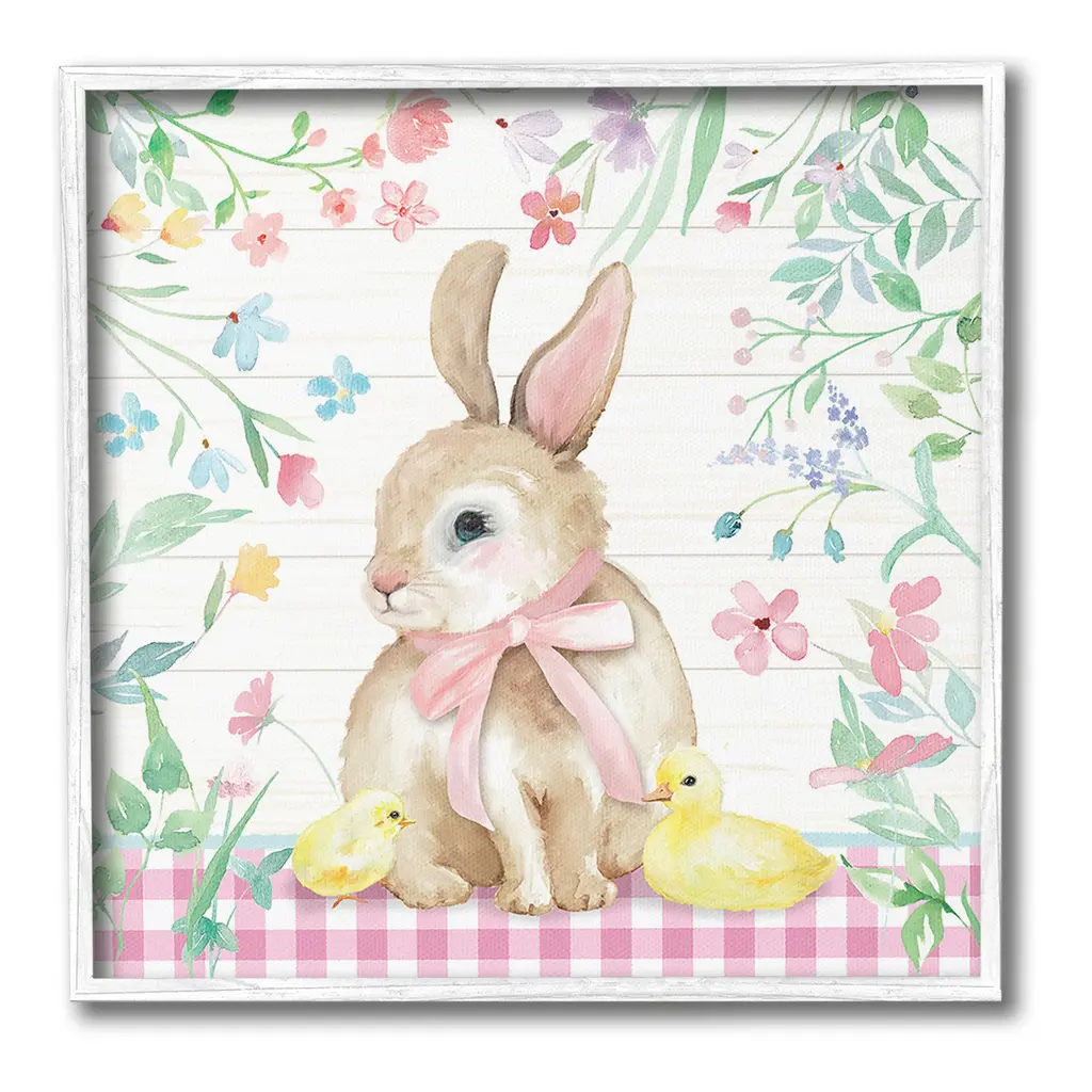 Elevate your home or office to the next level with Stupell Framed Floating Canvas Wall Art. Our premium hand-stretched canvas is mounted securely into a sturdy lightweight frame. The museum-style gap between the wrapped canvas and the box frame gives the illusion of floating artwork. Stupell Wall Art is made in the USA.Features: Dimensions: 18 x 1.7 x 18 Frame, 17 x 1.5 x 17 Canvas ArtFloating Frame Canvas Products are available in sizes 18"x18" and 25"x25". All Floating Frame Canvas Products have a 1.7" Depth.Wall Art is Ready to Hang with Hardware Free Hanging. No Installation required. For Easy Set Up Lean or Layer Artwork on Shelf or Against Wall. Artwork is Permently Fixed into the Frame.Our elevated 1.7" Thick Floating Frame is the perfect complement to our canvas style Wall Art. We use only the highest quality inks in house with industry leading printing solutions. Canvas is hand stretched over a durable wood foundation and then mounted securly into a Modern Box Frame. Made in the USA.Artwork Relates To: Holiday, Spring, Easter, Floral, Flower, Plaid, Gingham, Pattern, Country, Cottage, Chick, DuckDesign by Mollie B.