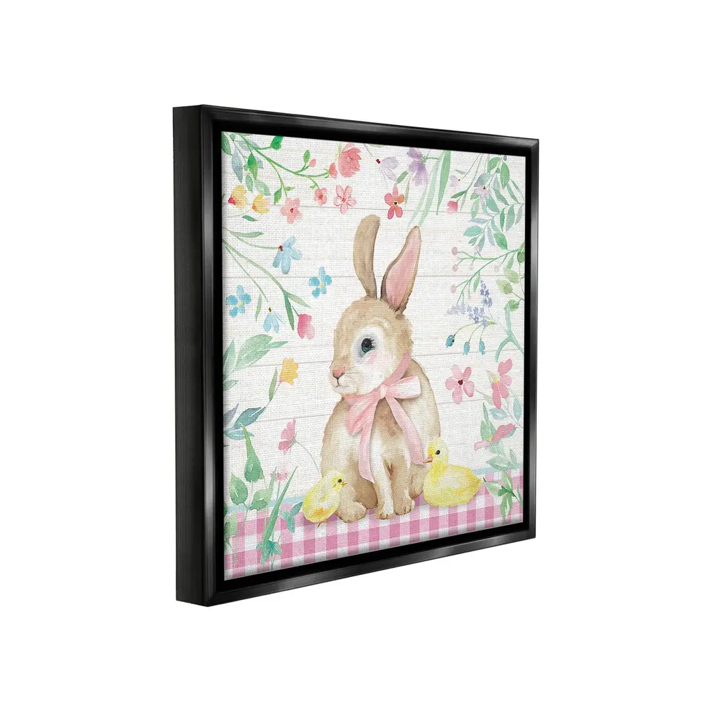 Stupell Easter Bunny & Chicks Framed Floater Canvas Wall Art Design By Mollie B. - 18 X 18 - Black