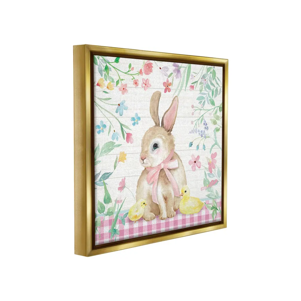 Elevate your home or office to the next level with Stupell Framed Floating Canvas Wall Art. Our premium hand-stretched canvas is mounted securely into a sturdy lightweight frame. The museum-style gap between the wrapped canvas and the box frame gives the illusion of floating artwork. Stupell Wall Art is made in the USA.Features: Dimensions: 18 x 1.7 x 18 Frame, 17 x 1.5 x 17 Canvas ArtFloating Frame Canvas Products are available in sizes 18"x18" and 25"x25". All Floating Frame Canvas Products have a 1.7" Depth.Wall Art is Ready to Hang with Hardware Free Hanging. No Installation required. For Easy Set Up Lean or Layer Artwork on Shelf or Against Wall. Artwork is Permently Fixed into the Frame.Our elevated 1.7" Thick Floating Frame is the perfect complement to our canvas style Wall Art. We use only the highest quality inks in house with industry leading printing solutions. Canvas is hand stretched over a durable wood foundation and then mounted securly into a Modern Box Frame. Made in the USA.Artwork Relates To: Holiday, Spring, Easter, Floral, Flower, Plaid, Gingham, Pattern, Country, Cottage, Chick, DuckDesign by Mollie B.