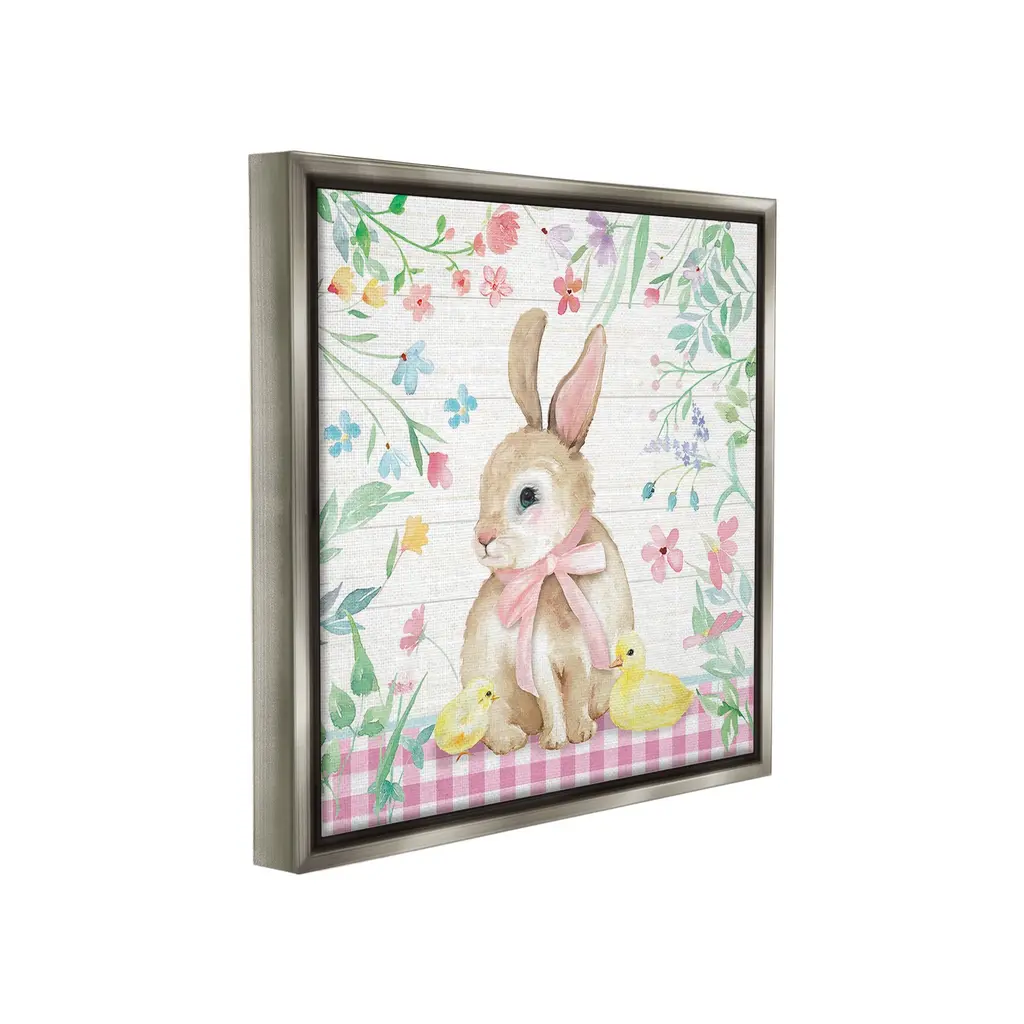 Elevate your home or office to the next level with Stupell Framed Floating Canvas Wall Art. Our premium hand-stretched canvas is mounted securely into a sturdy lightweight frame. The museum-style gap between the wrapped canvas and the box frame gives the illusion of floating artwork. Stupell Wall Art is made in the USA.Features: Dimensions: 18 x 1.7 x 18 Frame, 17 x 1.5 x 17 Canvas ArtFloating Frame Canvas Products are available in sizes 18"x18" and 25"x25". All Floating Frame Canvas Products have a 1.7" Depth.Wall Art is Ready to Hang with Hardware Free Hanging. No Installation required. For Easy Set Up Lean or Layer Artwork on Shelf or Against Wall. Artwork is Permently Fixed into the Frame.Our elevated 1.7" Thick Floating Frame is the perfect complement to our canvas style Wall Art. We use only the highest quality inks in house with industry leading printing solutions. Canvas is hand stretched over a durable wood foundation and then mounted securly into a Modern Box Frame. Made in the USA.Artwork Relates To: Holiday, Spring, Easter, Floral, Flower, Plaid, Gingham, Pattern, Country, Cottage, Chick, DuckDesign by Mollie B.