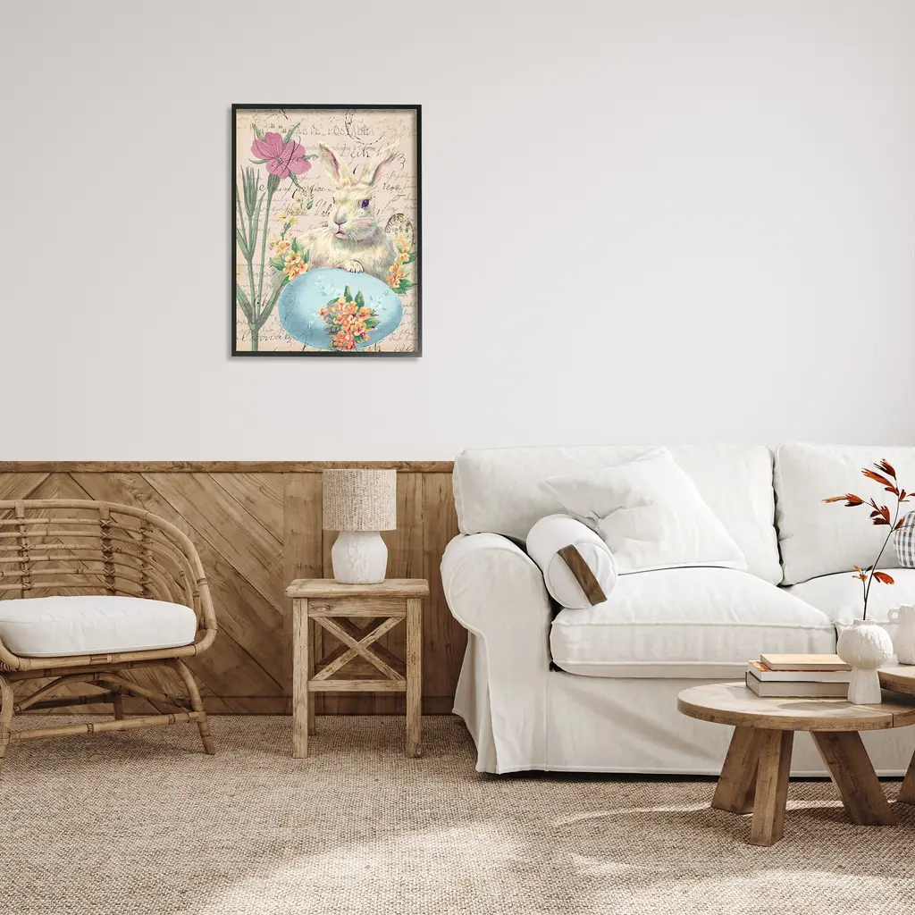 Stupell Easter Bunny Spring Blue Egg Vintage Postal Script Framed Wall Art - 24 X 30 - Black