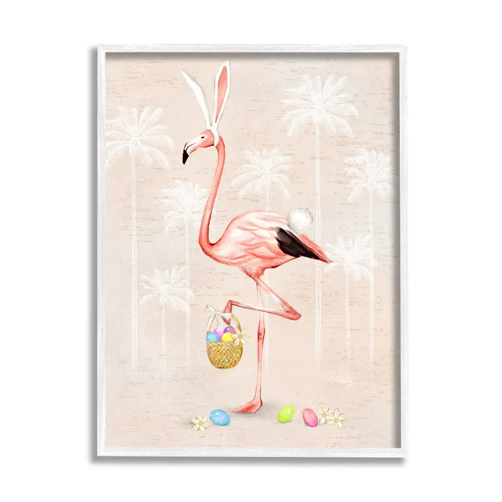 Stupell Easter Flamingo Pink Bird Egg Hunt Basket Framed Wall Art - 11 X 14 - White