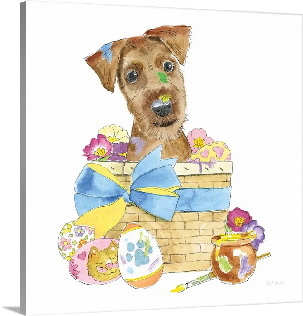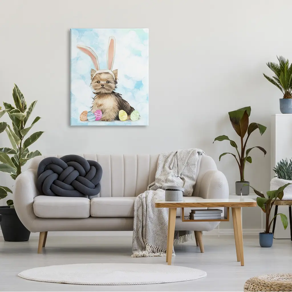 Stupell Easter Yorkie Puppy Bunny Ears Patterned Eggs Canvas Wall Art - Blue - 30 X 40