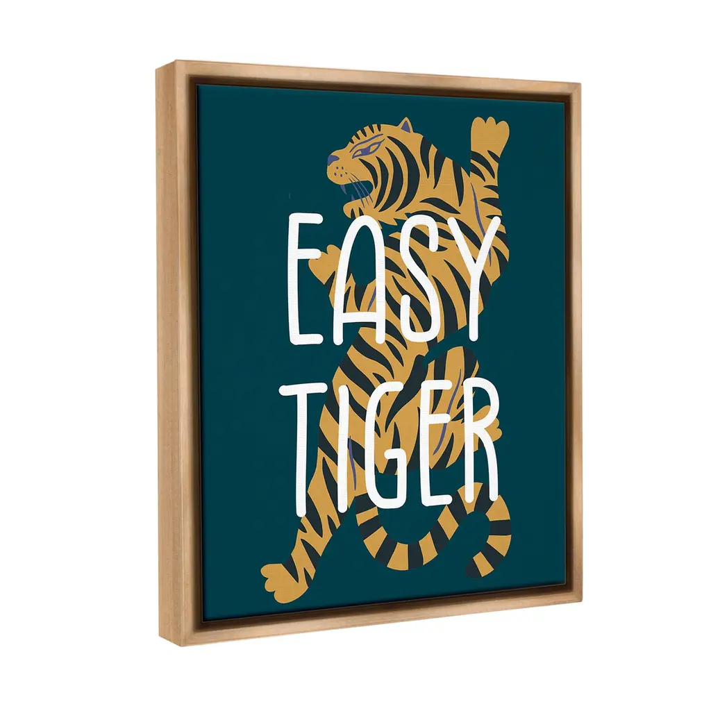 Elevate your home or office to the next level with Stupell Framed Floating Canvas Wall Art. Our premium hand-stretched canvas is mounted securely into a sturdy lightweight frame. The museum-style gap between the wrapped canvas and the box frame gives the illusion of floating artwork. Stupell Wall Art is made in the USA.Features: Dimensions: 17 x 1.7 x 21 Frame, 16 x 1.5 x 20 Canvas ArtFloating Frame Canvas Products are available in sizes 17"x21" and 25"x31". All Floating Frame Canvas Products have a 1.7" Depth.Wall Art is Ready to Hang with Hardware Free Hanging. No Installation required. For Easy Set Up Lean or Layer Artwork on Shelf or Against Wall. Artwork is Permently Fixed into the Frame.Our elevated 1.7" Thick Floating Frame is the perfect complement to our canvas style Wall Art. We use only the highest quality inks in house with industry leading printing solutions. Canvas is hand stretched over a durable wood foundation and then mounted securly into a Modern Box Frame. Made in the USA.Artwork Relates To: Animal, Wildlife, Mammal, Phrase, Jungle, Tiger, Easy TigerDesign by Lil' Rue