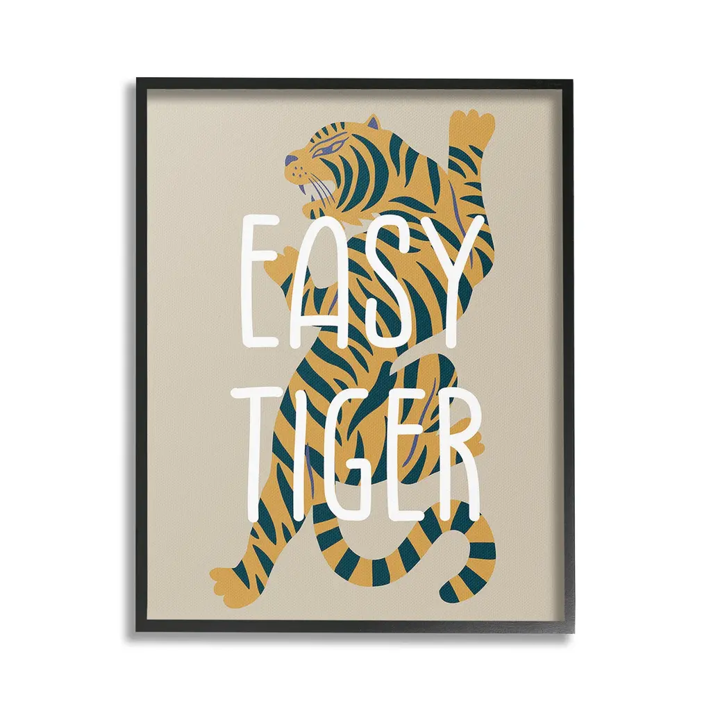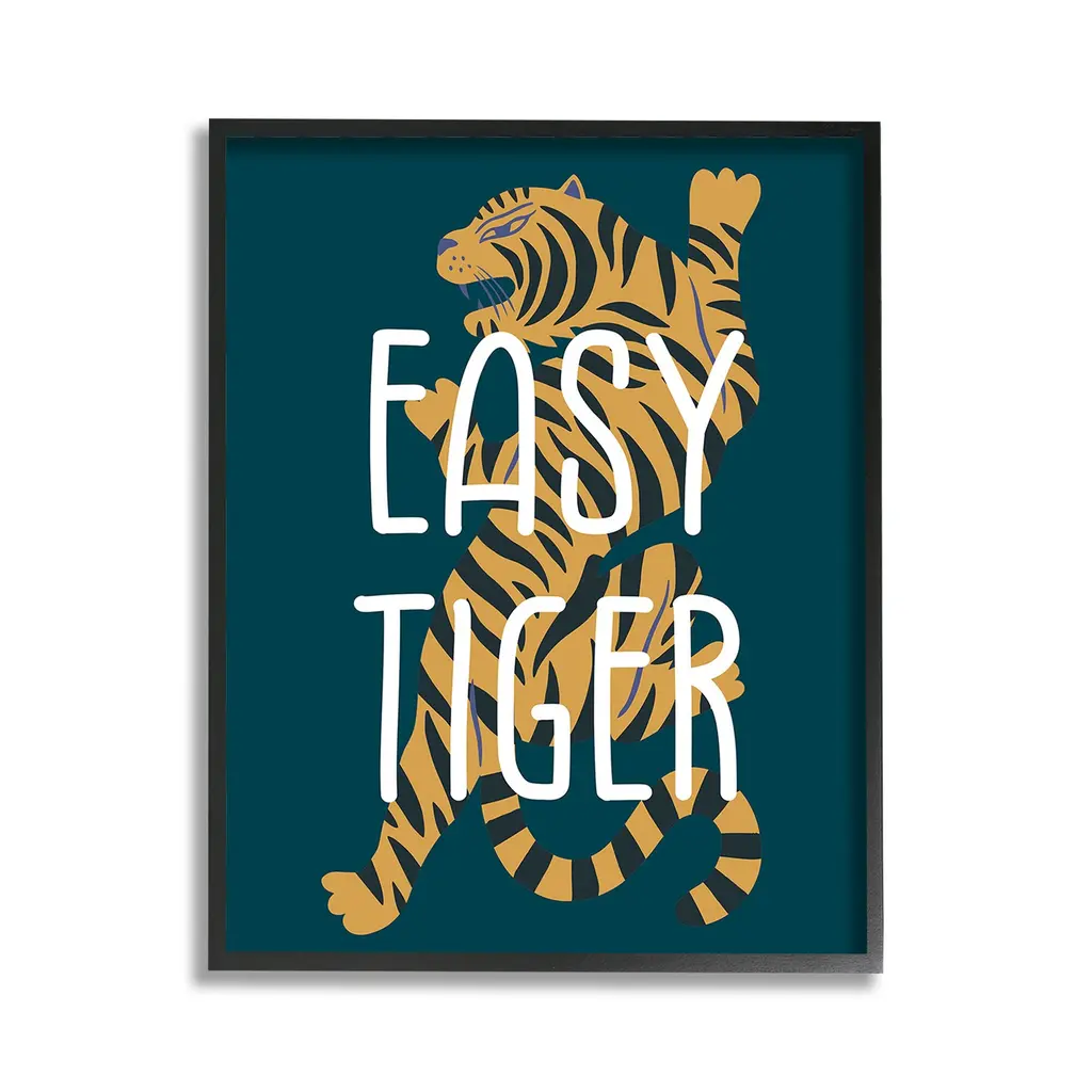 Add dimension to any room with our textured Framed Giclee Artwork. Our framed artwork is securely mounted into a 1.5-inch thick wood grain frame and ready to hang. Frames are available in three alluring styles: black, gray farmhouse and white. In addition, you should check out our oversized options if you want a statement piece. Stupell Wall Art is made in the USA.Features: Dimensions: 11 x 1.5 x 14 FramedFramed Giclee Products are available in the sizes 11"x14", 16"x20" or 24"x30". All Framed Giclee Products have a 1.5" Depth. Wall Art is Ready to Hang with Hardware Free Hanging. No installation required. For Easy Set Up Lean or Layer Artwork on Shelf or Against Wall.Our giclée prints are carefully mounted on a durable MDF backing, and then perfectly finished in a 1.5 inch thick woodgrain frame. Mounted frame colors include black, gray farmhouse and white. Made In USA.Artwork Relates To: Animal, Wildlife, Mammal, Phrase, Jungle, Tiger, Easy TigerDesign by Lil' Rue