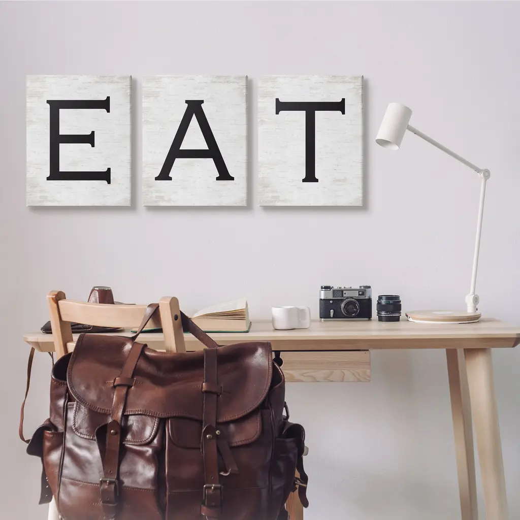 Stupell Eat Phrase Traditional Typography Minimal Farmhouse Kitchen 3Pc Multi Piece Canvas Wall Art Set - White - 16 X 20