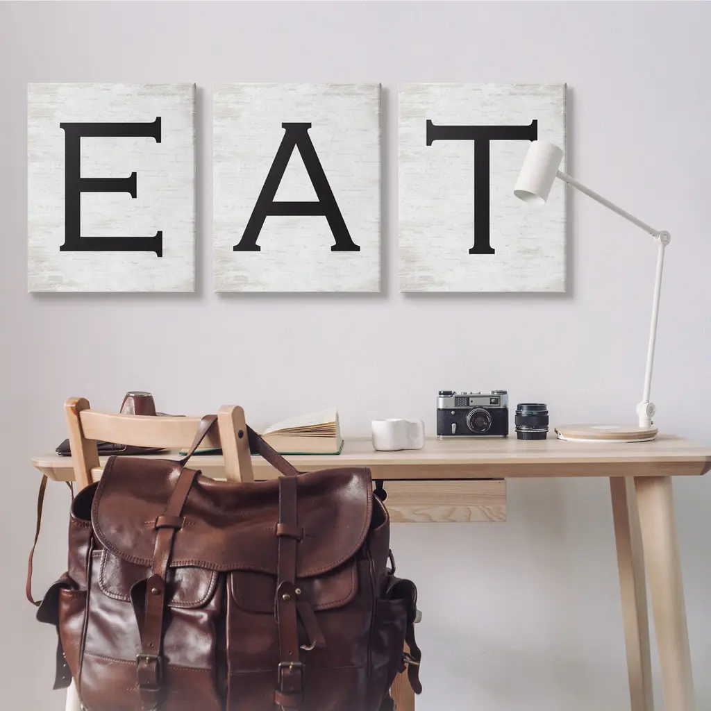 Stupell Eat Phrase Traditional Typography Minimal Farmhouse Kitchen 3Pc Multi Piece Canvas Wall Art Set - White - 24 X 30