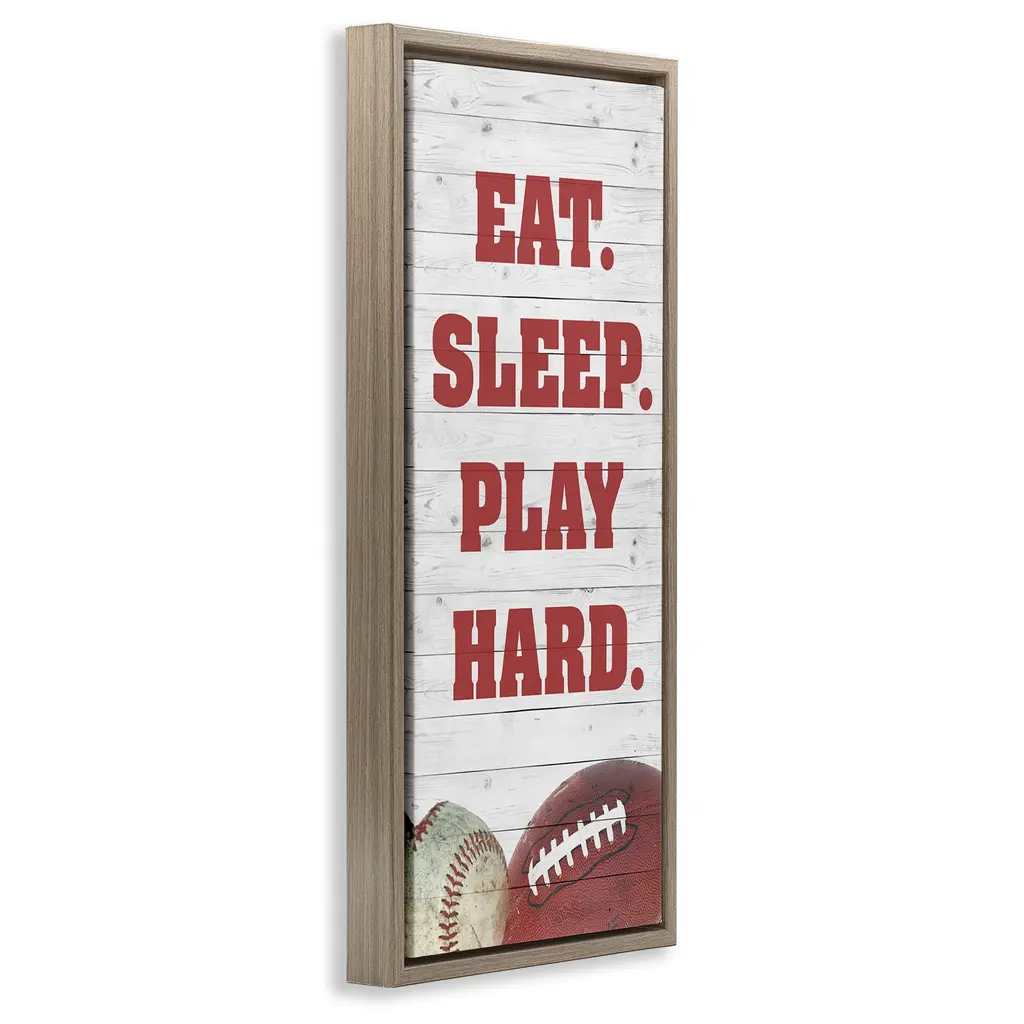 Stupell Eat Sleep Play Hard Sports Framed Floater Canvas Wall Art Design By Andi Metz - 11 X 25 - Brown