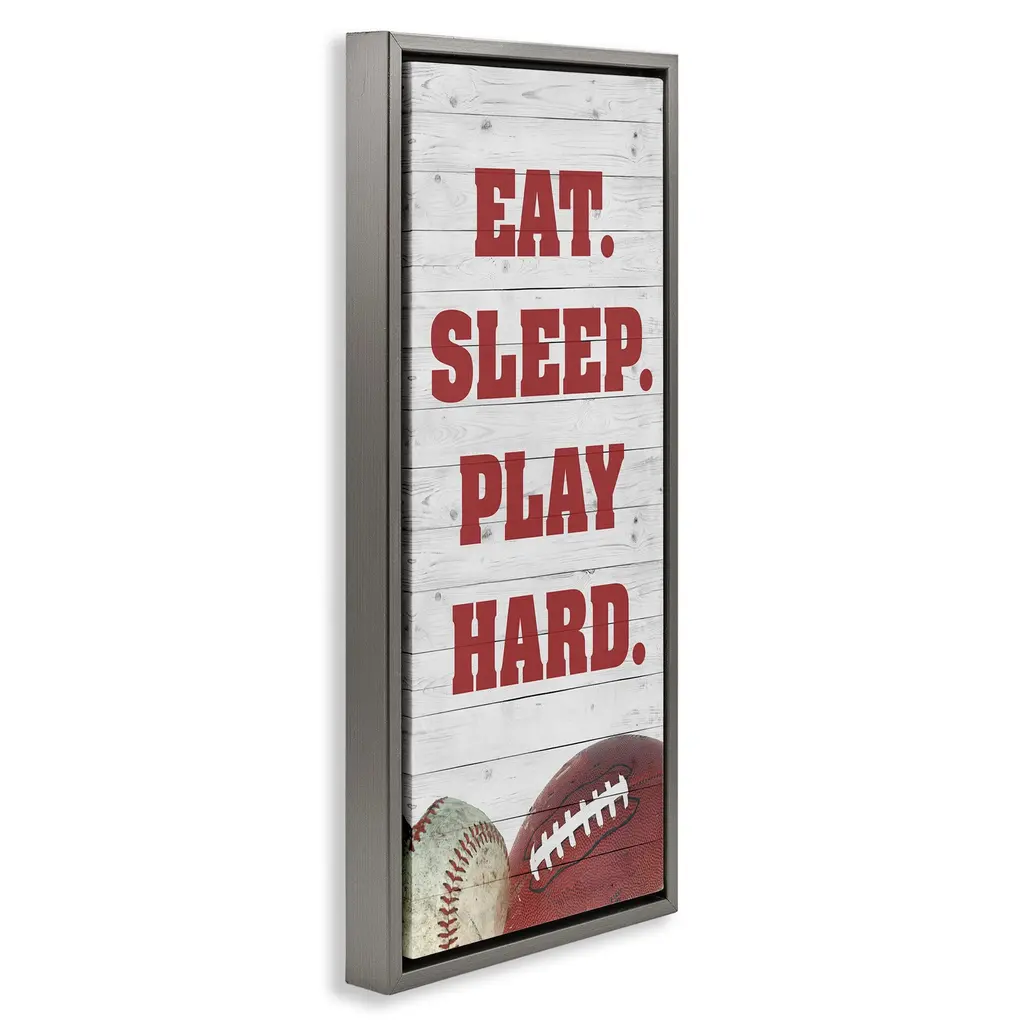 Stupell Eat Sleep Play Hard Sports Framed Floater Canvas Wall Art Design By Andi Metz - 11 X 25 - Grey