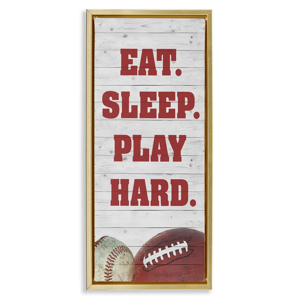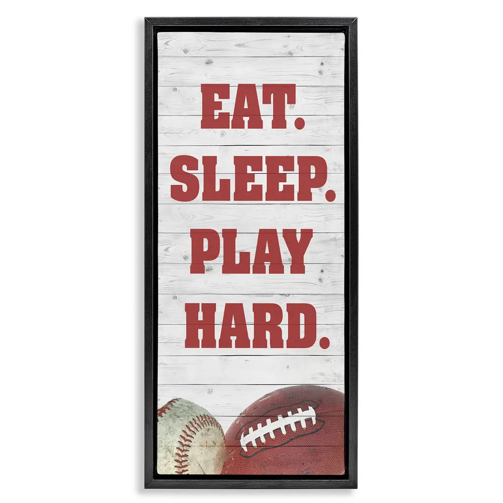 Stupell Eat Sleep Play Hard Sports Framed Floater Canvas Wall Art Design By Andi Metz - 14 X 31 - Grey