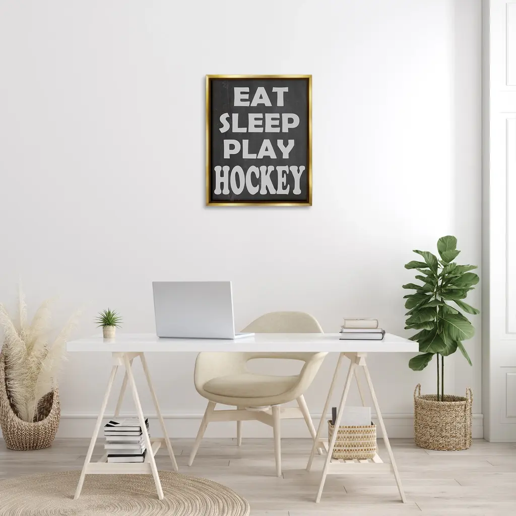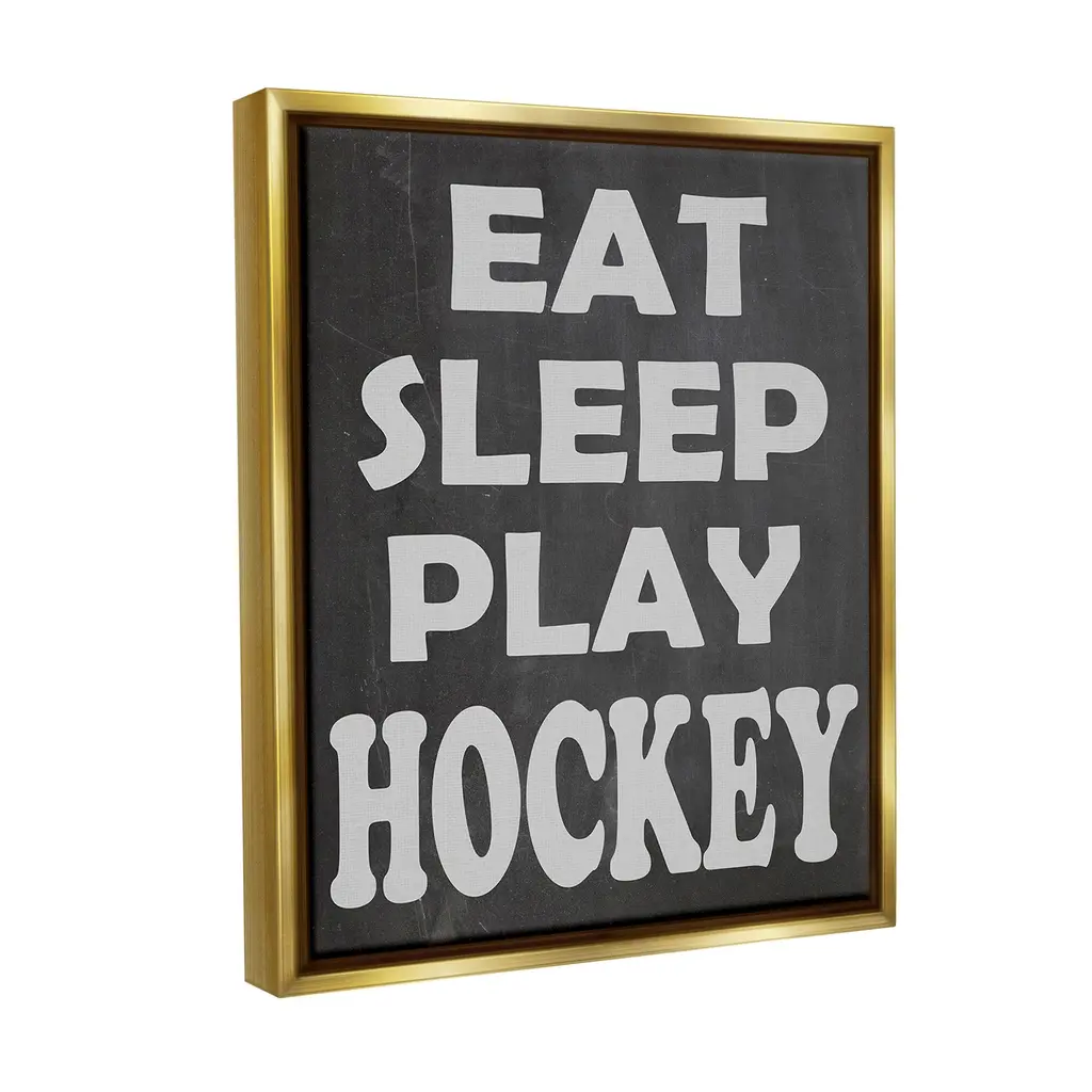 Stupell Eat Sleep Play Hockey Framed Floater Canvas Wall Art Design By Olivia Jean - 25 X 31 - Gold