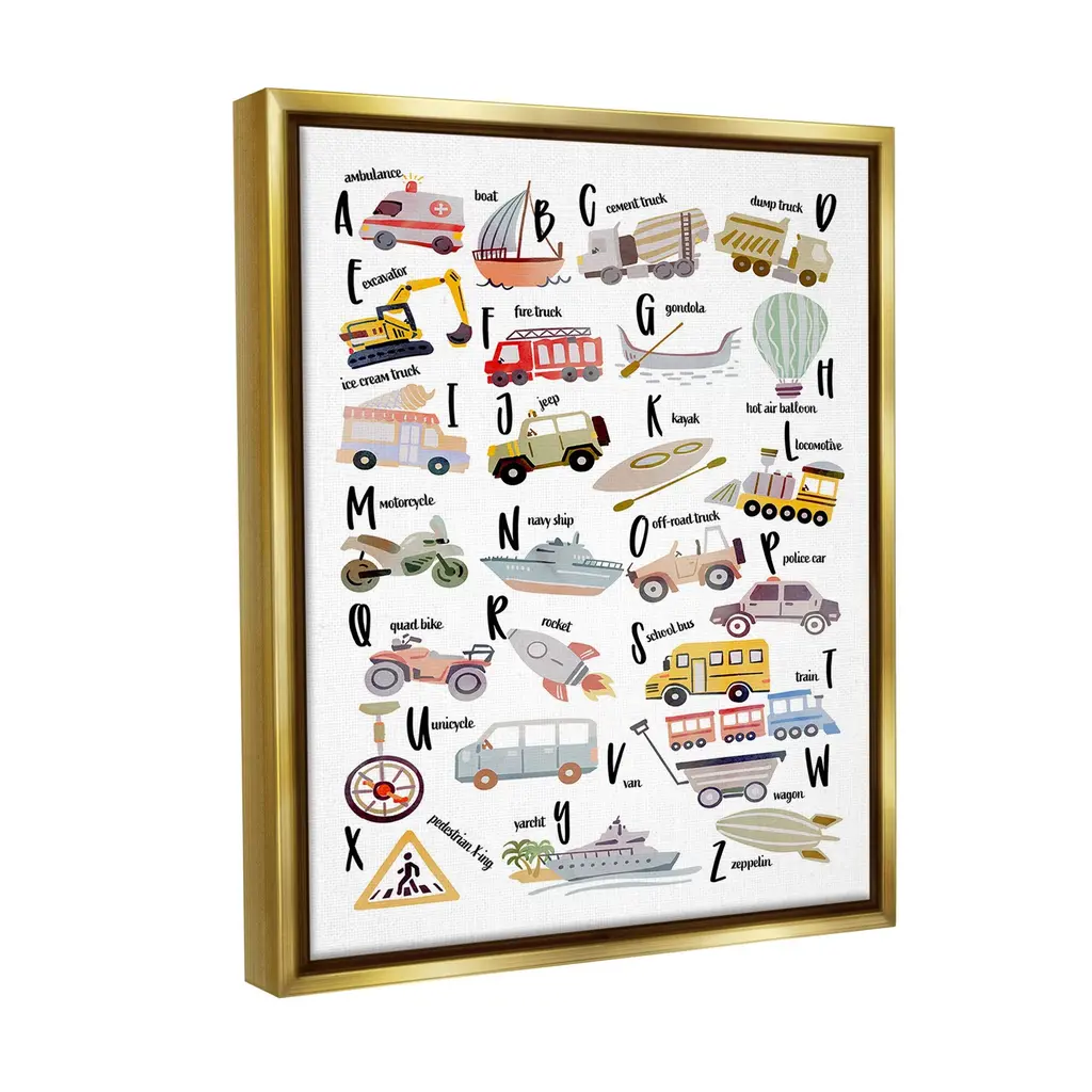 Stupell Educational Automobile Alphabet Framed Floater Canvas Wall Art Design By Ziwei Li - 17 X 21 - Gold