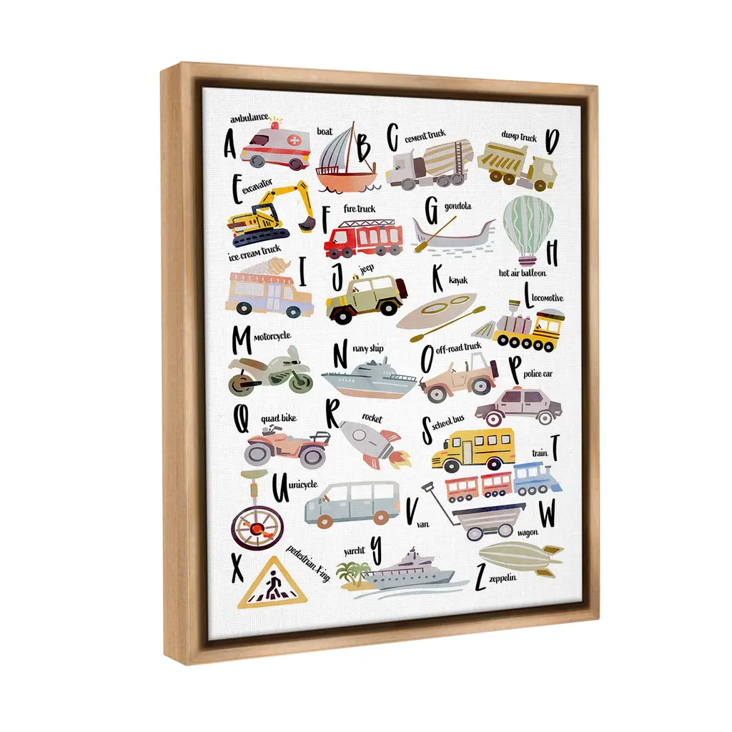 Elevate your home or office to the next level with Stupell Framed Floating Canvas Wall Art. Our premium hand-stretched canvas is mounted securely into a sturdy lightweight frame. The museum-style gap between the wrapped canvas and the box frame gives the illusion of floating artwork. Stupell Wall Art is made in the USA.Features: Dimensions: 17 x 1.7 x 21 Frame, 16 x 1.5 x 20 Canvas ArtFloating Frame Canvas Products are available in sizes 17"x21" and 25"x31". All Floating Frame Canvas Products have a 1.7" Depth.Wall Art is Ready to Hang with Hardware Free Hanging. No Installation required. For Easy Set Up Lean or Layer Artwork on Shelf or Against Wall. Artwork is Permently Fixed into the Frame.Our elevated 1.7" Thick Floating Frame is the perfect complement to our canvas style Wall Art. We use only the highest quality inks in house with industry leading printing solutions. Canvas is hand stretched over a durable wood foundation and then mounted securly into a Modern Box Frame. Made in the USA.Artwork Relates To: Transportation, Vehicle, Truck, Construction, Car, Automobile, Alphabet, EducationalDesign by Ziwei Li