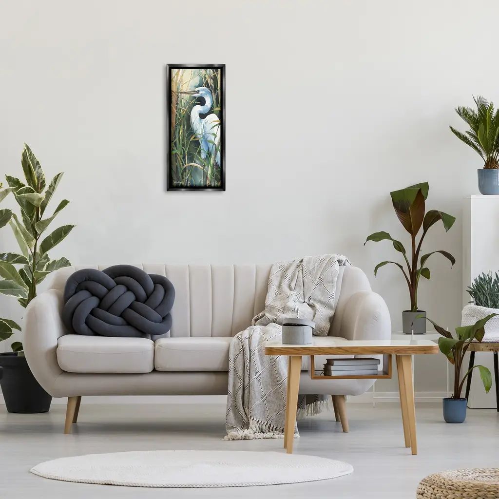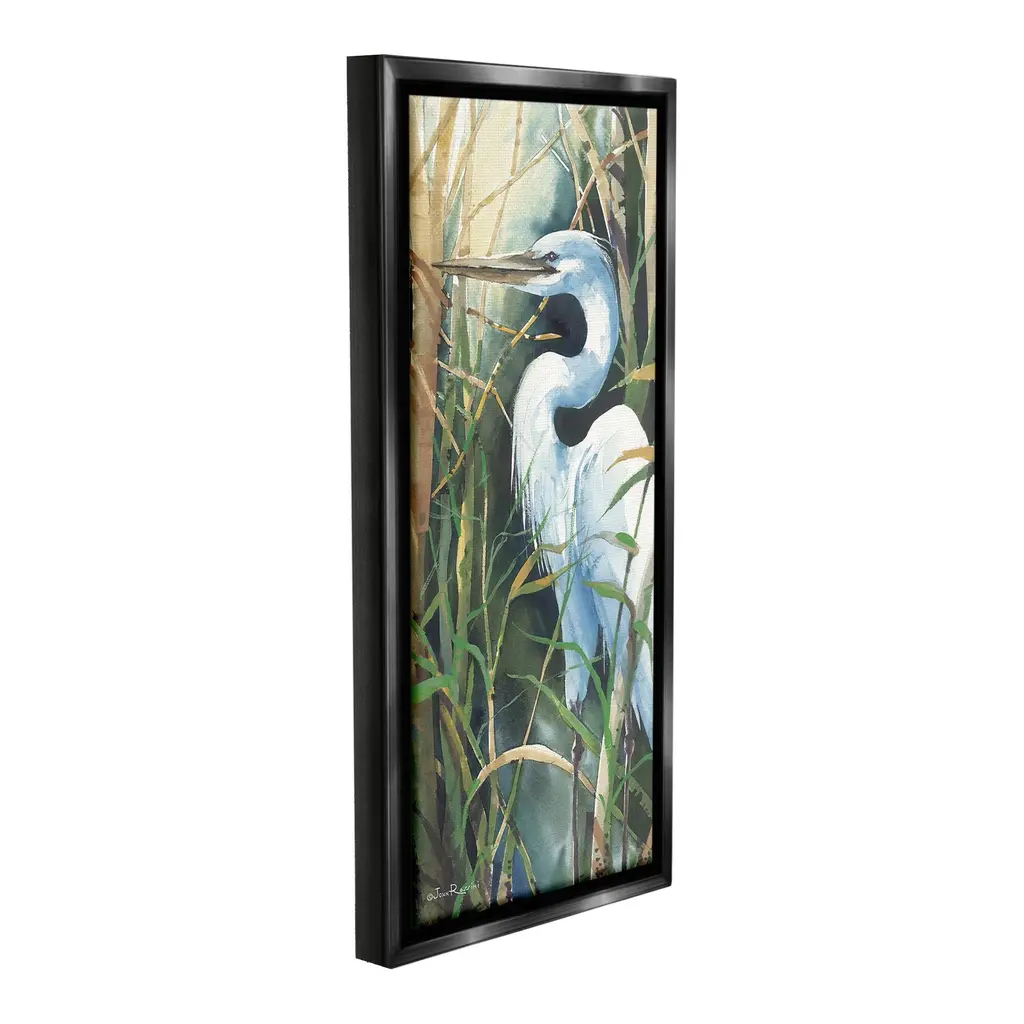 Elevate your home or office to the next level with Stupell Framed Floating Canvas Wall Art. Our premium hand-stretched canvas is mounted securely into a sturdy lightweight frame. The museum-style gap between the wrapped canvas and the box frame gives the illusion of floating artwork. Stupell Wall Art is made in the USA.Features: Dimensions: 11 x 1.7 x 25 Frame, 10 x 1.5 x 24 Canvas ArtFloating Frame Canvas Products are available in sizes 11"x25" and 14"x31". All Floating Frame Canvas Products have a 1.7" Depth.Wall Art is Ready to Hang with Hardware Free Hanging. No Installation required. For Easy Set Up Lean or Layer Artwork on Shelf or Against Wall. Artwork is Permently Fixed into the Frame.Our elevated 1.7" Thick Floating Frame is the perfect complement to our canvas style Wall Art. We use only the highest quality inks in house with industry leading printing solutions. Canvas is hand stretched over a durable wood foundation and then mounted securly into a Modern Box Frame. Made in the USA.Artwork Relates To: Animal, Bird, Waterfowl, Crane Bird, Land, Nature, Plant, Water, Heron, TraditionalDesign by John Rossini