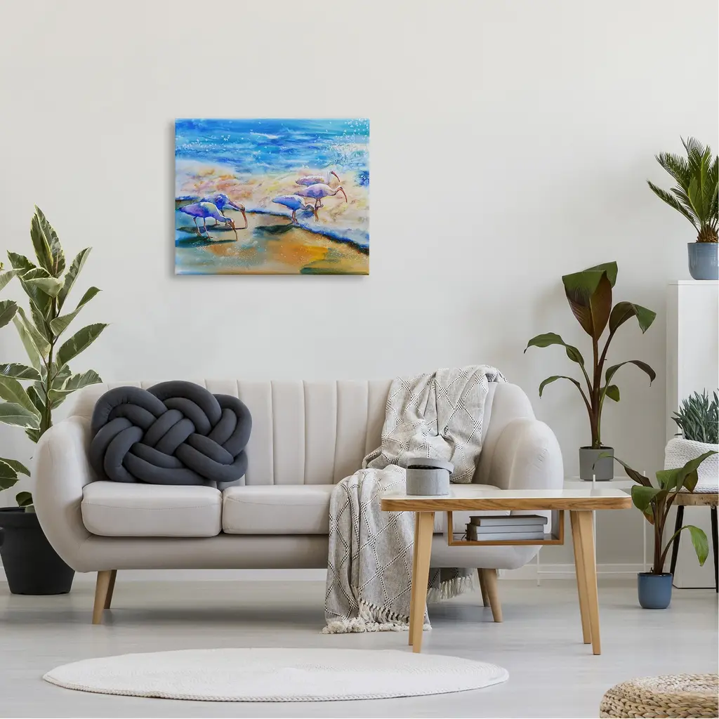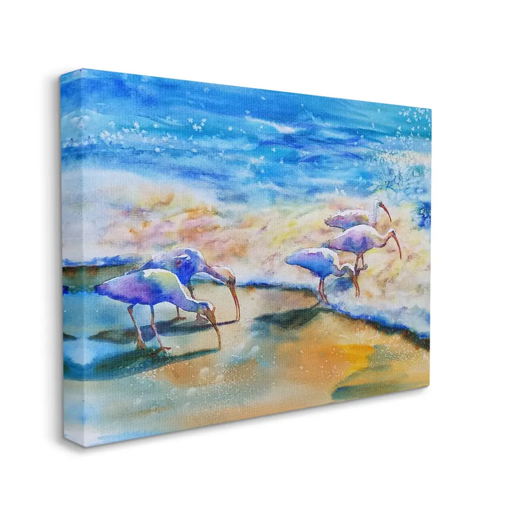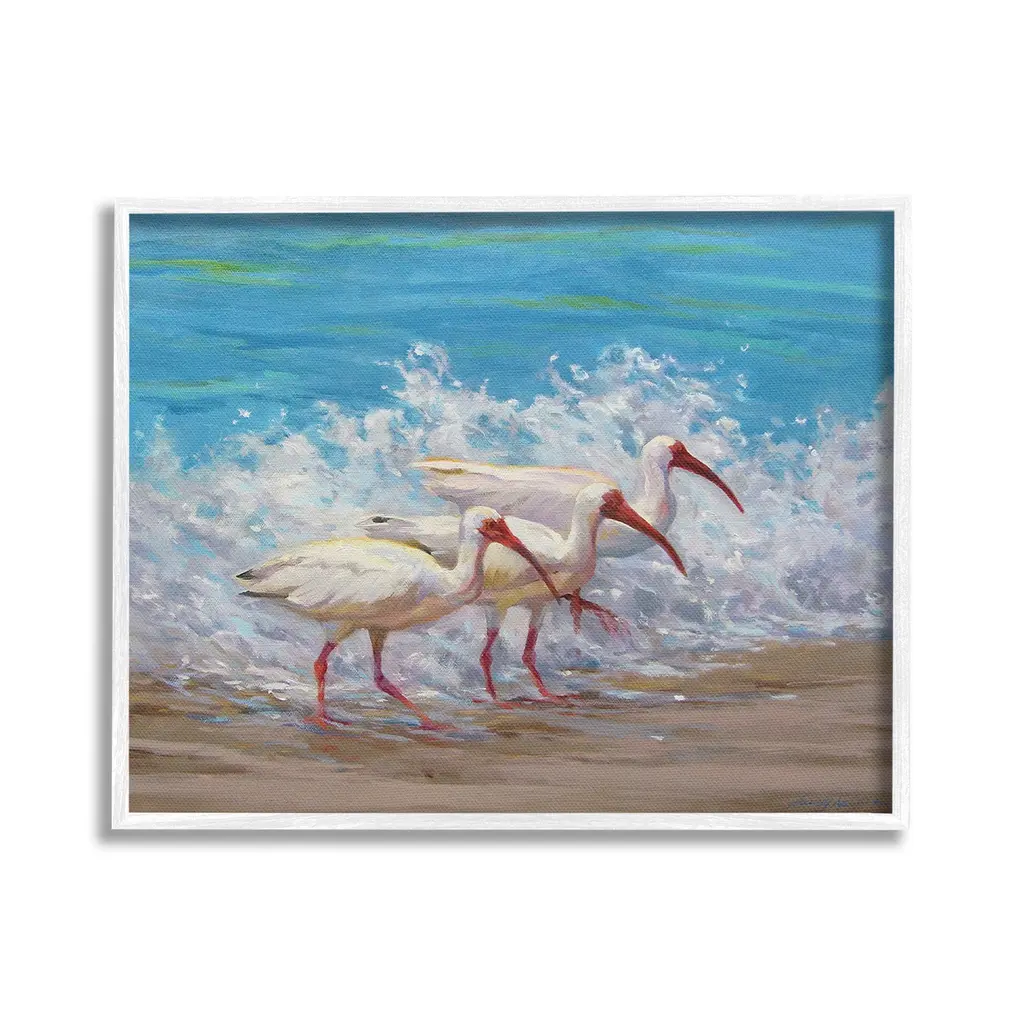 Stupell Egret Birds Walking Ocean Shore Splashing Water Canvas Wall Art - 24 X 30