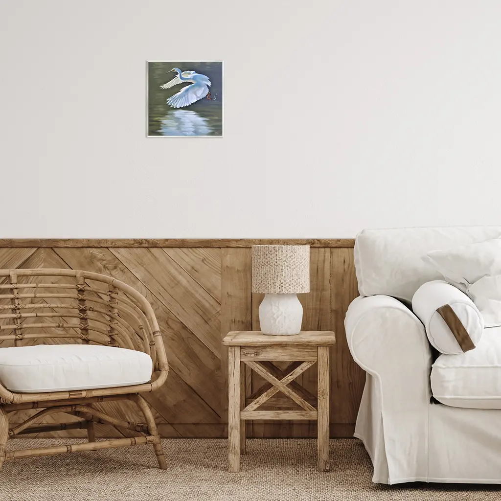 Our wall plaques start as high-quality lithograph prints mounted on durable 0.5-inch thick MDF wood. Each piece is hand finished and comes with a fresh layer of white foil on the sides to give it a crisp, clean look. Plaques arrive ready to hang without installation and come with removable plastic corners to keep them from damage in transit. Stupell Wall Art is made in the USA.Features: Dimensions: 12 x 0.5 x 12 InchesWall Art is Ready to Hang with Hardware Free Hanging. No installation required. For Easy Set Up Lean or Layer Artwork on Shelf or Against Wall.All of our wall plaques start off as high quality lithograph prints that are then mounted on durable 0.5 inch thick MDF wood. Each piece is hand finished and comes with a fresh layer of foil on the sides to give it a crisp clean look. Made In USA.Artwork Relates To: Animal, Bird, Waterfowl, Heron, Crane Bird, Egret, Beak, Stork, LandscapeDesign by D. Rust