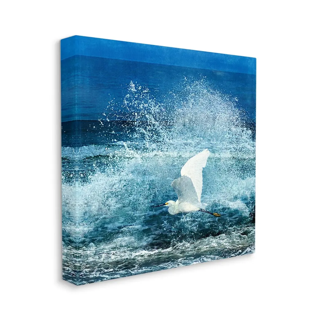 We create our stretched canvas to the highest standards. Using only the highest quality inks and canvas on Mimaki printers, we hand-cut and stretch each piece over a 1.5-inch thick wooden frame for hanging. As a result, the art comes ready to hang on the sturdy ledge with no installation required. Stupell Wall Art is made in the USA.Features: Dimensions: 17 x 1.5 x 17 InchesStretched Canvas Sizes Include Standard: 17 x 1.5 x 17 Large: 24 x 1.5 x 24 X-Large: 30 x 1.5 x 30 Oversized: 36 x 1.5 x 36Wall Art is Ready to Hang - No Installation or Hardware Needed. For Easy Set Up Lean or Layer Artwork on Shelf or Against Wall.Our stretched canvas is created with the highest standards. We use only the highest quality inks and canvas on our in house Mimaki printers, and then hand cut and stretch each piece over a 1.5 inch thick wooden frame for hanging. Made In USA.Artwork Relates To: Animal, Bird, Waterfowl, Nature, Outdoors, Sea, Water, Egret, Heron, Crane Bird, Flying, Sea WavesDesign by Christine Zalewski