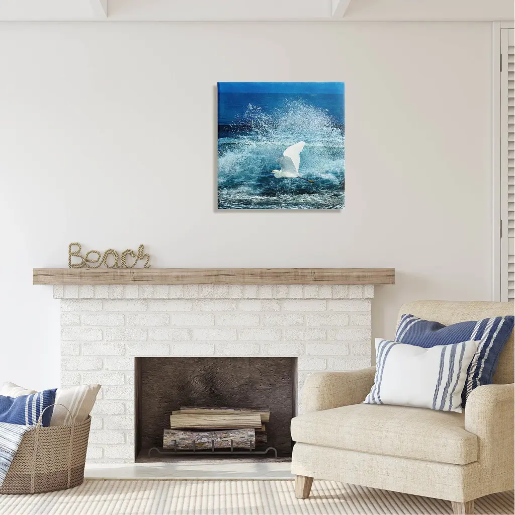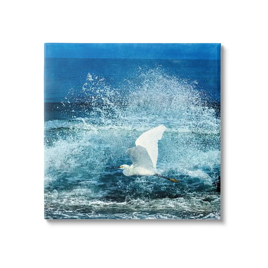 We create our stretched canvas to the highest standards. Using only the highest quality inks and canvas on Mimaki printers, we hand-cut and stretch each piece over a 1.5-inch thick wooden frame for hanging. As a result, the art comes ready to hang on the sturdy ledge with no installation required. Stupell Wall Art is made in the USA.Features: Dimensions: 17 x 1.5 x 17 InchesStretched Canvas Sizes Include Standard: 17 x 1.5 x 17 Large: 24 x 1.5 x 24 X-Large: 30 x 1.5 x 30 Oversized: 36 x 1.5 x 36Wall Art is Ready to Hang - No Installation or Hardware Needed. For Easy Set Up Lean or Layer Artwork on Shelf or Against Wall.Our stretched canvas is created with the highest standards. We use only the highest quality inks and canvas on our in house Mimaki printers, and then hand cut and stretch each piece over a 1.5 inch thick wooden frame for hanging. Made In USA.Artwork Relates To: Animal, Bird, Waterfowl, Nature, Outdoors, Sea, Water, Egret, Heron, Crane Bird, Flying, Sea WavesDesign by Christine Zalewski