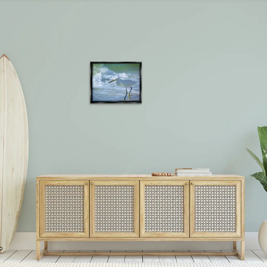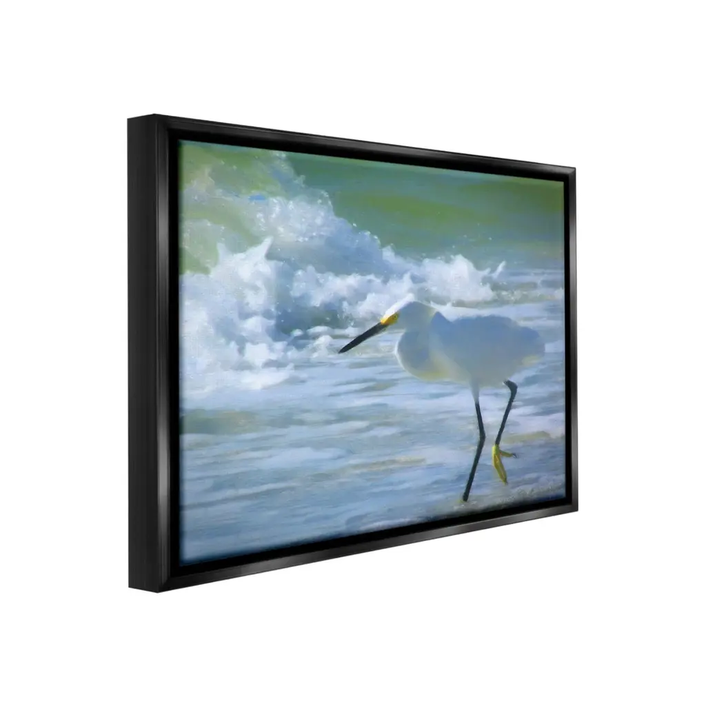 Elevate your home or office to the next level with Stupell Framed Floating Canvas Wall Art. Our premium hand-stretched canvas is mounted securely into a sturdy lightweight frame. The museum-style gap between the wrapped canvas and the box frame gives the illusion of floating artwork. Stupell Wall Art is made in the USA.Features: Dimensions: 21 x 1.7 x 17 Frame, 20 x 1.5 x 16 Canvas ArtFloating Frame Canvas Products are available in sizes 21"x17" and 31"x25". All Floating Frame Canvas Products have a 1.7" Depth.Wall Art is Ready to Hang with Hardware Free Hanging. No Installation required. For Easy Set Up Lean or Layer Artwork on Shelf or Against Wall. Artwork is Permently Fixed into the Frame.Our elevated 1.7" Thick Floating Frame is the perfect complement to our canvas style Wall Art. We use only the highest quality inks in house with industry leading printing solutions. Canvas is hand stretched over a durable wood foundation and then mounted securly into a Modern Box Frame. Made in the USA.Artwork Relates To: Animal, Bird, Waterfowl, Heron, Egret, Sea, Water, Stork, Beach, Shore, Wave, SplashDesign by GraffiTee Studios