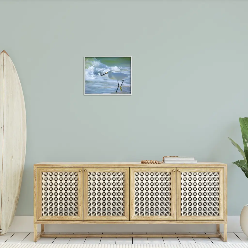 Add dimension to any room with our textured Framed Giclee Artwork. Our framed artwork is securely mounted into a 1.5-inch thick wood grain frame and ready to hang. Frames are available in three alluring styles: black, gray farmhouse and white. In addition, you should check out our oversized options if you want a statement piece. Stupell Wall Art is made in the USA.Features: Dimensions: 14 x 1.5 x 11 FramedFramed Giclee Products are available in the sizes 14"x11", 20"x16" or 30"x24". All Framed Giclee Products have a 1.5" Depth. Wall Art is Ready to Hang with Hardware Free Hanging. No installation required. For Easy Set Up Lean or Layer Artwork on Shelf or Against Wall.Our giclée prints are carefully mounted on a durable MDF backing, and then perfectly finished in a 1.5 inch thick woodgrain frame. Mounted frame colors include black, gray farmhouse and white. Made In USA.Artwork Relates To: Animal, Bird, Waterfowl, Heron, Egret, Sea, Water, Stork, Beach, Shore, Wave, SplashDesign by GraffiTee Studios