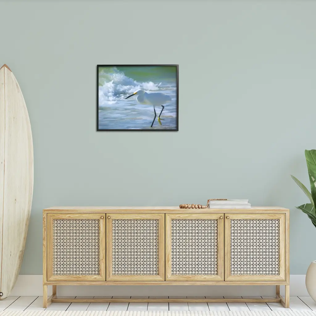 Add dimension to any room with our textured Framed Giclee Artwork. Our framed artwork is securely mounted into a 1.5-inch thick wood grain frame and ready to hang. Frames are available in three alluring styles: black, gray farmhouse and white. In addition, you should check out our oversized options if you want a statement piece. Stupell Wall Art is made in the USA.Features: Dimensions: 14 x 1.5 x 11 FramedFramed Giclee Products are available in the sizes 14"x11", 20"x16" or 30"x24". All Framed Giclee Products have a 1.5" Depth. Wall Art is Ready to Hang with Hardware Free Hanging. No installation required. For Easy Set Up Lean or Layer Artwork on Shelf or Against Wall.Our giclée prints are carefully mounted on a durable MDF backing, and then perfectly finished in a 1.5 inch thick woodgrain frame. Mounted frame colors include black, gray farmhouse and white. Made In USA.Artwork Relates To: Animal, Bird, Waterfowl, Heron, Egret, Sea, Water, Stork, Beach, Shore, Wave, SplashDesign by GraffiTee Studios