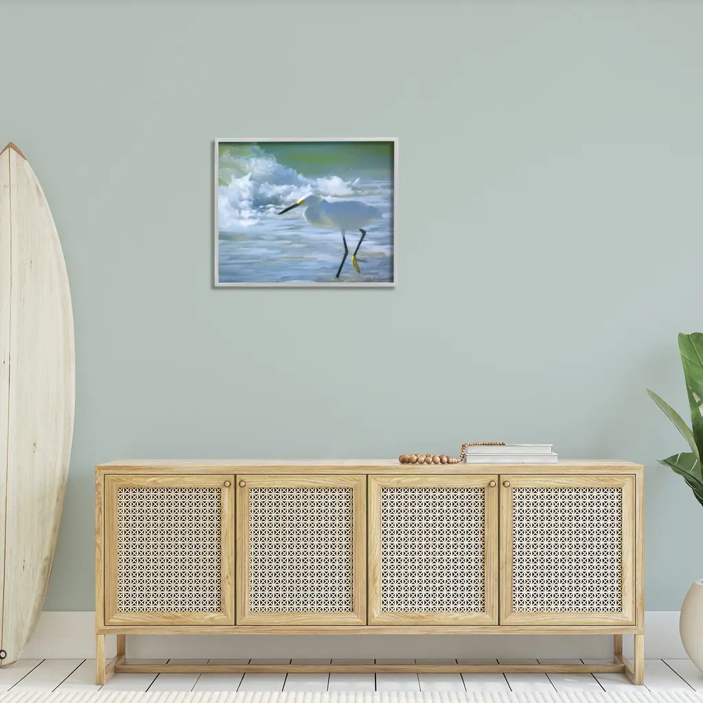 Add dimension to any room with our textured Framed Giclee Artwork. Our framed artwork is securely mounted into a 1.5-inch thick wood grain frame and ready to hang. Frames are available in three alluring styles: black, gray farmhouse and white. In addition, you should check out our oversized options if you want a statement piece. Stupell Wall Art is made in the USA.Features: Dimensions: 14 x 1.5 x 11 FramedFramed Giclee Products are available in the sizes 14"x11", 20"x16" or 30"x24". All Framed Giclee Products have a 1.5" Depth. Wall Art is Ready to Hang with Hardware Free Hanging. No installation required. For Easy Set Up Lean or Layer Artwork on Shelf or Against Wall.Our giclée prints are carefully mounted on a durable MDF backing, and then perfectly finished in a 1.5 inch thick woodgrain frame. Mounted frame colors include black, gray farmhouse and white. Made In USA.Artwork Relates To: Animal, Bird, Waterfowl, Heron, Egret, Sea, Water, Stork, Beach, Shore, Wave, SplashDesign by GraffiTee Studios