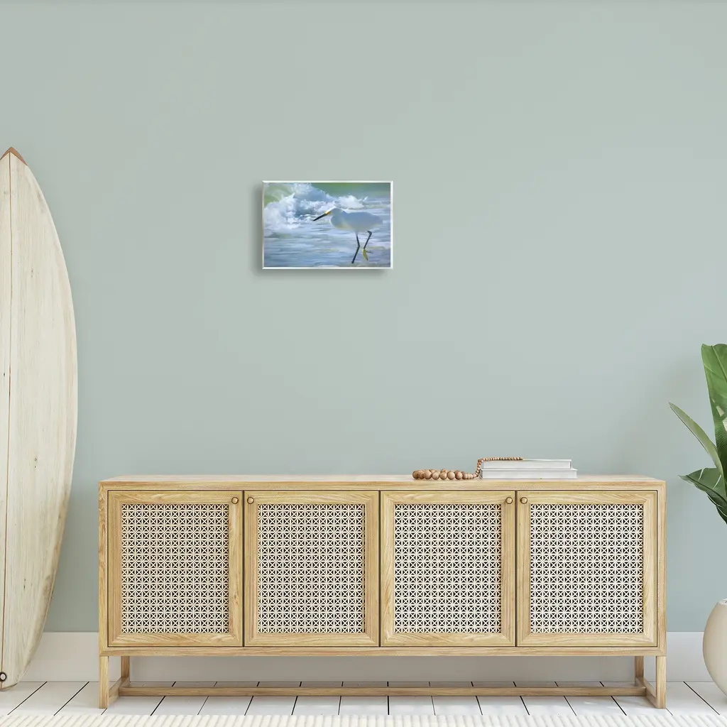 Our wall plaques start as high-quality lithograph prints mounted on durable 0.5-inch thick MDF wood. Each piece is hand finished and comes with a fresh layer of white foil on the sides to give it a crisp, clean look. Plaques arrive ready to hang without installation and come with removable plastic corners to keep them from damage in transit. Stupell Wall Art is made in the USA.Features: Dimensions: 15 x 0.5 x 10 InchesWall Plaque Product Sizes Include 15"x10" and 19"x13". All wall plaque products have a 0.5" Depth. Wall Art is Ready to Hang with Hardware Free Hanging. No installation required. For Easy Set Up Lean or Layer Artwork on Shelf or Against Wall.All of our wall plaques start off as high quality lithograph prints that are then mounted on durable 0.5 inch thick MDF wood. Each piece is hand finished and comes with a fresh layer of foil on the sides to give it a crisp clean look. Made In USA.Artwork Relates To: Animal, Bird, Waterfowl, Heron, Egret, Sea, Water, Stork, Beach, Shore, Wave, SplashDesign by GraffiTee Studios