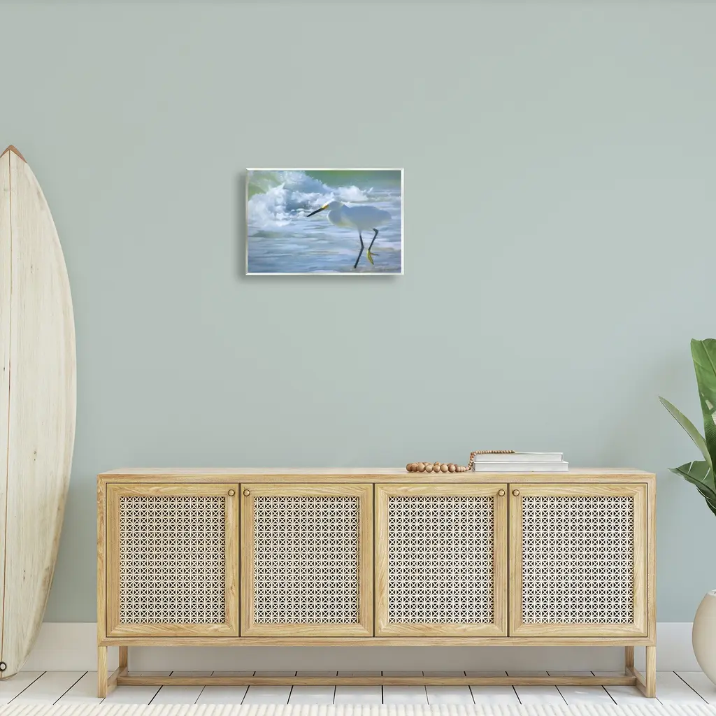 Our wall plaques start as high-quality lithograph prints mounted on durable 0.5-inch thick MDF wood. Each piece is hand finished and comes with a fresh layer of white foil on the sides to give it a crisp, clean look. Plaques arrive ready to hang without installation and come with removable plastic corners to keep them from damage in transit. Stupell Wall Art is made in the USA.Features: Dimensions: 15 x 0.5 x 10 InchesWall Plaque Product Sizes Include 15"x10" and 19"x13". All wall plaque products have a 0.5" Depth. Wall Art is Ready to Hang with Hardware Free Hanging. No installation required. For Easy Set Up Lean or Layer Artwork on Shelf or Against Wall.All of our wall plaques start off as high quality lithograph prints that are then mounted on durable 0.5 inch thick MDF wood. Each piece is hand finished and comes with a fresh layer of foil on the sides to give it a crisp clean look. Made In USA.Artwork Relates To: Animal, Bird, Waterfowl, Heron, Egret, Sea, Water, Stork, Beach, Shore, Wave, SplashDesign by GraffiTee Studios