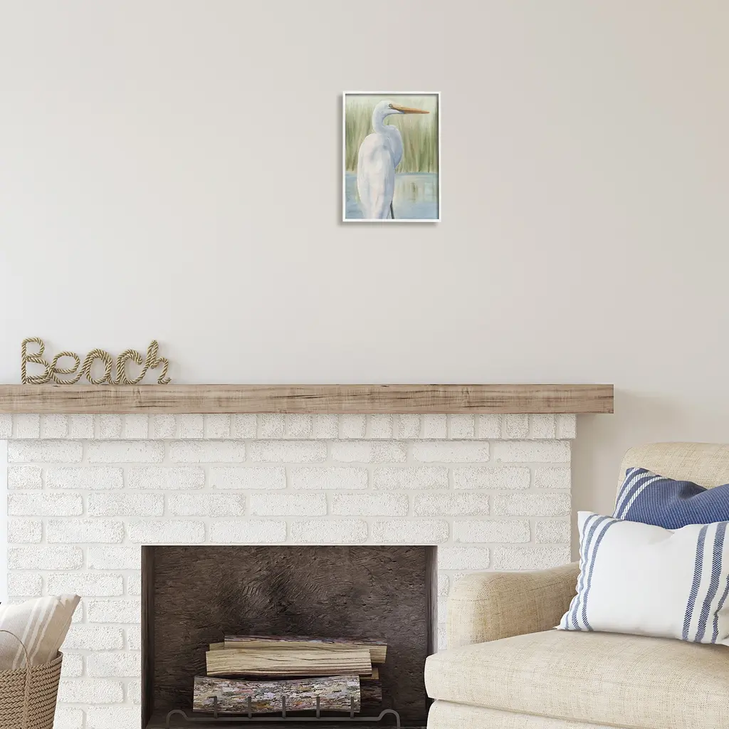 Add dimension to any room with our textured Framed Giclee Artwork. Our framed artwork is securely mounted into a 1.5-inch thick wood grain frame and ready to hang. Frames are available in three alluring styles: black, gray farmhouse and white. In addition, you should check out our oversized options if you want a statement piece. Stupell Wall Art is made in the USA.Features: Dimensions: 11 x 1.5 x 14 FramedFramed Giclee Sizes Include Standard: 11 x 1.5 x 14 Large: 16 x 1.5 x 20 Oversized: 24 x 1.5 x 30Wall Art is Ready to Hang with Hardware Free Hanging. No installation required. For Easy Set Up Lean or Layer Artwork on Shelf or Against Wall.Our giclée prints are carefully mounted on a durable MDF backing, and then perfectly finished in a 1.5 inch thick woodgrain frame. Mounted frame colors include black, gray farmhouse and white. Made In USA.Artwork Relates To: Animal, Bird, Waterfowl, Heron, Beach, Coast, Shore, Portrait, EgretDesign by Grace Popp