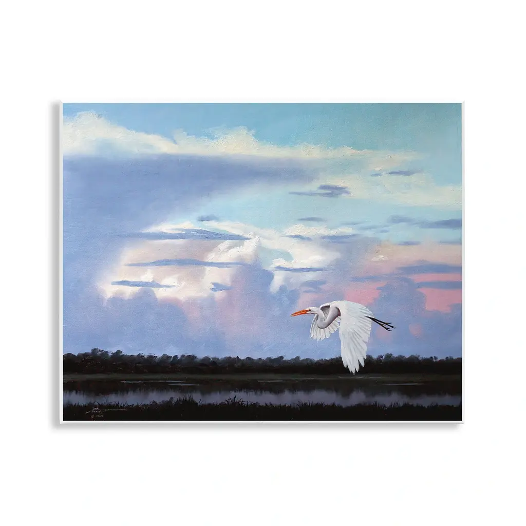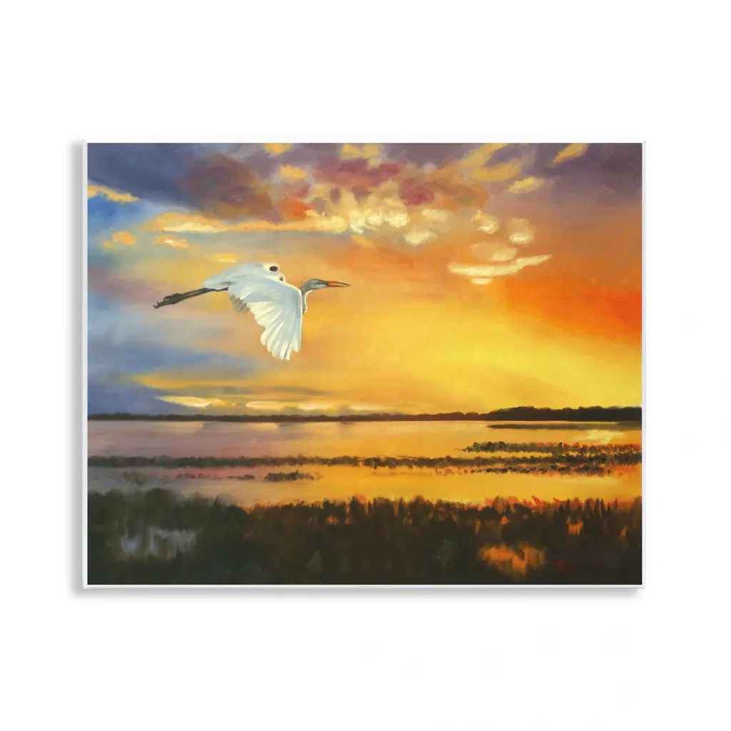 Our wall plaques start as high-quality lithograph prints mounted on durable 0.5-inch thick MDF wood. Each piece is hand finished and comes with a fresh layer of white foil on the sides to give it a crisp, clean look. Plaques arrive ready to hang without installation and come with removable plastic corners to keep them from damage in transit. Stupell Wall Art is made in the USA.Features: Dimensions: 14 x 0.5 x 11 InchesWall Art is Ready to Hang with Hardware Free Hanging. No installation required. For Easy Set Up Lean or Layer Artwork on Shelf or Against Wall.All of our wall plaques start off as high quality lithograph prints that are then mounted on durable 0.5 inch thick MDF wood. Each piece is hand finished and comes with a fresh layer of foil on the sides to give it a crisp clean look. Made In USA.Artwork Relates To: Animal, Bird, Waterfowl, Heron, Crane Bird, Egret, Beak, Stork, LandscapeDesign by D. Rust