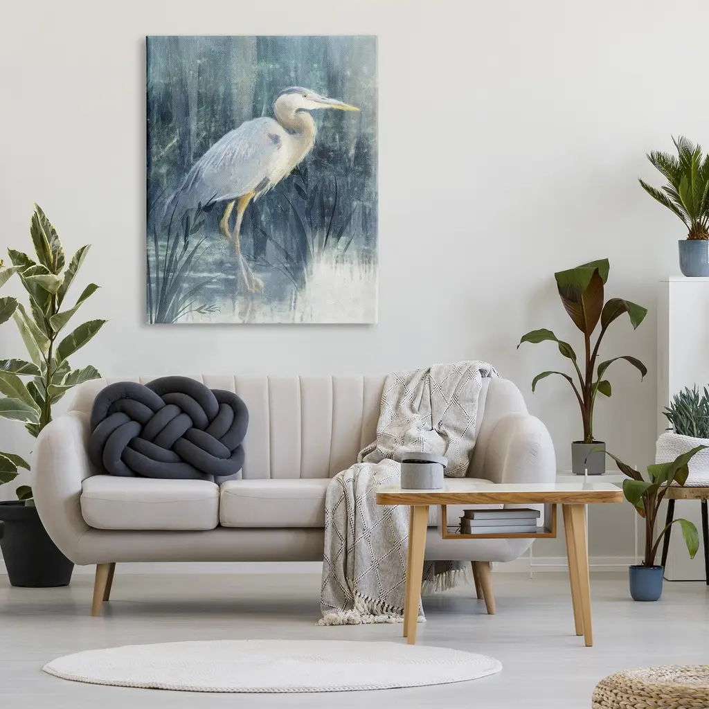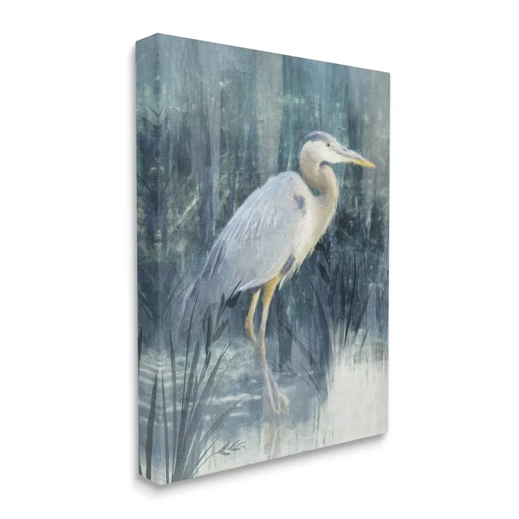 Proudly made in the USA, Our stretched canvas is created with the highest standards. We use only the highest quality inks and canvas on our in house Mimaki printers, and then hand cut and stretch each piece over a 1.5 inch thick wooden frame for hanging. The art comes ready to hang with no installation required. Room Type: Living Room, Den, Hallway, Office, Entryway, Study, Dining Room or Bedroom, Guest Room, Studio, Dorm or BoudoirFeatures: Dimensions: 16 x 1.5 x 20 InchesStretched Canvas Sizes Include Standard: 16 x 1.5 x 20 Large: 20 x 1.5 x 30 X-Large: 30 x 1.5 x 40 Oversized: 36 x 1.5 x 48Wall Art is Ready to Hang - No Installation or Hardware Needed. For Easy Set Up Lean or Layer Artwork on Shelf or Against Wall.Our stretched canvas is created with the highest standards. We use only the highest quality inks and canvas on our in house Mimaki printers, and then hand cut and stretch each piece over a 1.5 inch thick wooden frame for hanging. Made In USA.Artwork Relates To: Animal, Bird, Heron, Beak, Stork, EgretDesign by Nina Blue