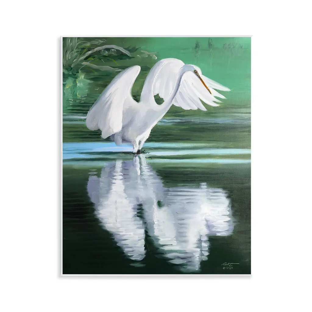 Our wall plaques start as high-quality lithograph prints mounted on durable 0.5-inch thick MDF wood. Each piece is hand finished and comes with a fresh layer of white foil on the sides to give it a crisp, clean look. Plaques arrive ready to hang without installation and come with removable plastic corners to keep them from damage in transit. Stupell Wall Art is made in the USA.Features: Dimensions: 14 x 0.5 x 11 InchesWall Art is Ready to Hang with Hardware Free Hanging. No installation required. For Easy Set Up Lean or Layer Artwork on Shelf or Against Wall.All of our wall plaques start off as high quality lithograph prints that are then mounted on durable 0.5 inch thick MDF wood. Each piece is hand finished and comes with a fresh layer of foil on the sides to give it a crisp clean look. Made In USA.Artwork Relates To: Animal, Bird, Waterfowl, Heron, Crane Bird, Egret, Beak, Stork, LandscapeDesign by D. Rust