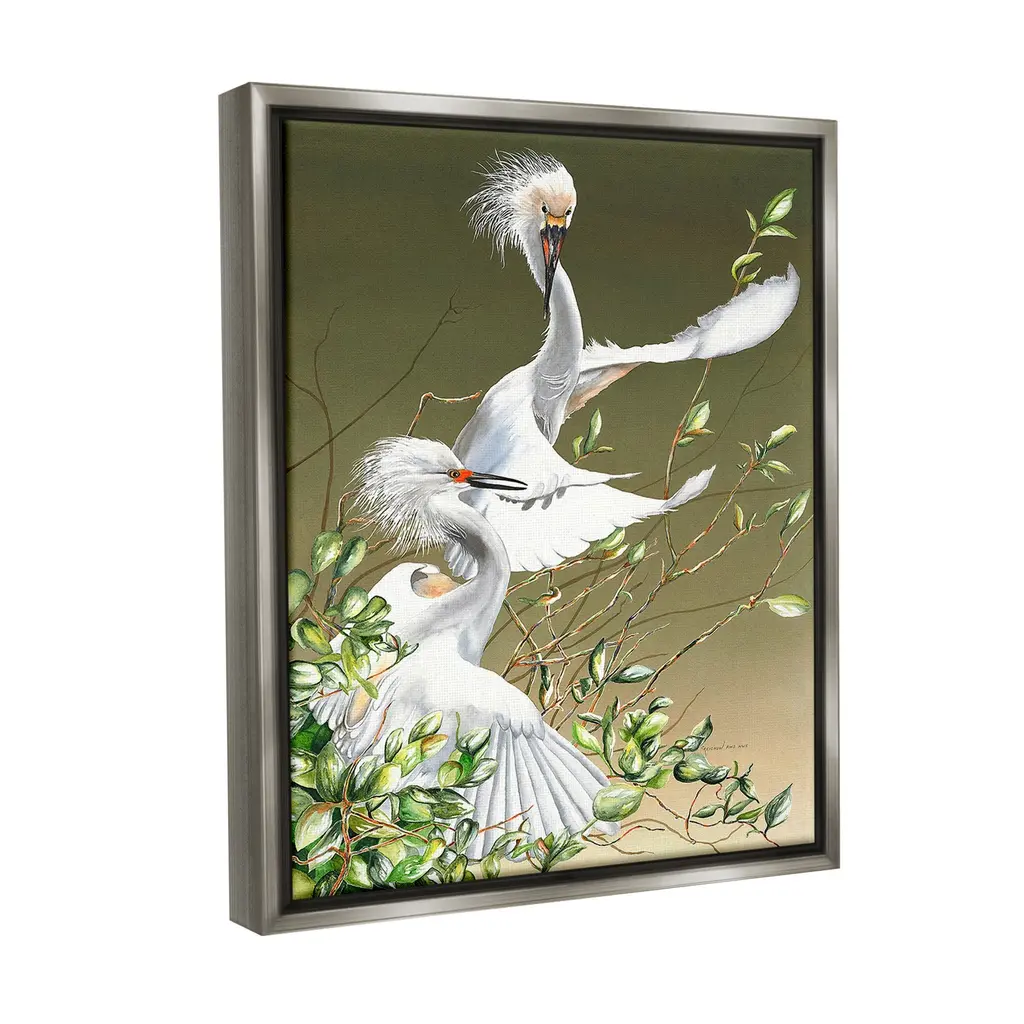 Elevate your home or office to the next level with Stupell Framed Floating Canvas Wall Art. Our premium hand-stretched canvas is mounted securely into a sturdy lightweight frame. The museum-style gap between the wrapped canvas and the box frame gives the illusion of floating artwork. Stupell Wall Art is made in the USA.Features: Dimensions: 17 x 1.7 x 21 Frame, 16 x 1.5 x 20 Canvas ArtFloating Frame Canvas Products are available in sizes 17"x21" and 25"x31". All Floating Frame Canvas Products have a 1.7" Depth.Wall Art is Ready to Hang with Hardware Free Hanging. No Installation required. For Easy Set Up Lean or Layer Artwork on Shelf or Against Wall. Artwork is Permently Fixed into the Frame.Our elevated 1.7" Thick Floating Frame is the perfect complement to our canvas style Wall Art. We use only the highest quality inks in house with industry leading printing solutions. Canvas is hand stretched over a durable wood foundation and then mounted securly into a Modern Box Frame. Made in the USA.Artwork Relates To: Animal, Bird, Waterfowl, Crane Bird, Heron, Egret, Beak, Stork, Nature, Leaf, Plant, TraditionalDesign by Christine Reichow
