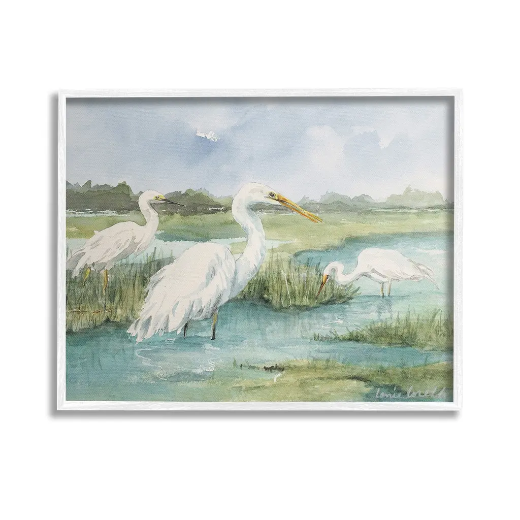 Stupell Egrets In Wetland Landscape Framed Giclee Art Design By Lanie Loreth - 11 X 14 - White