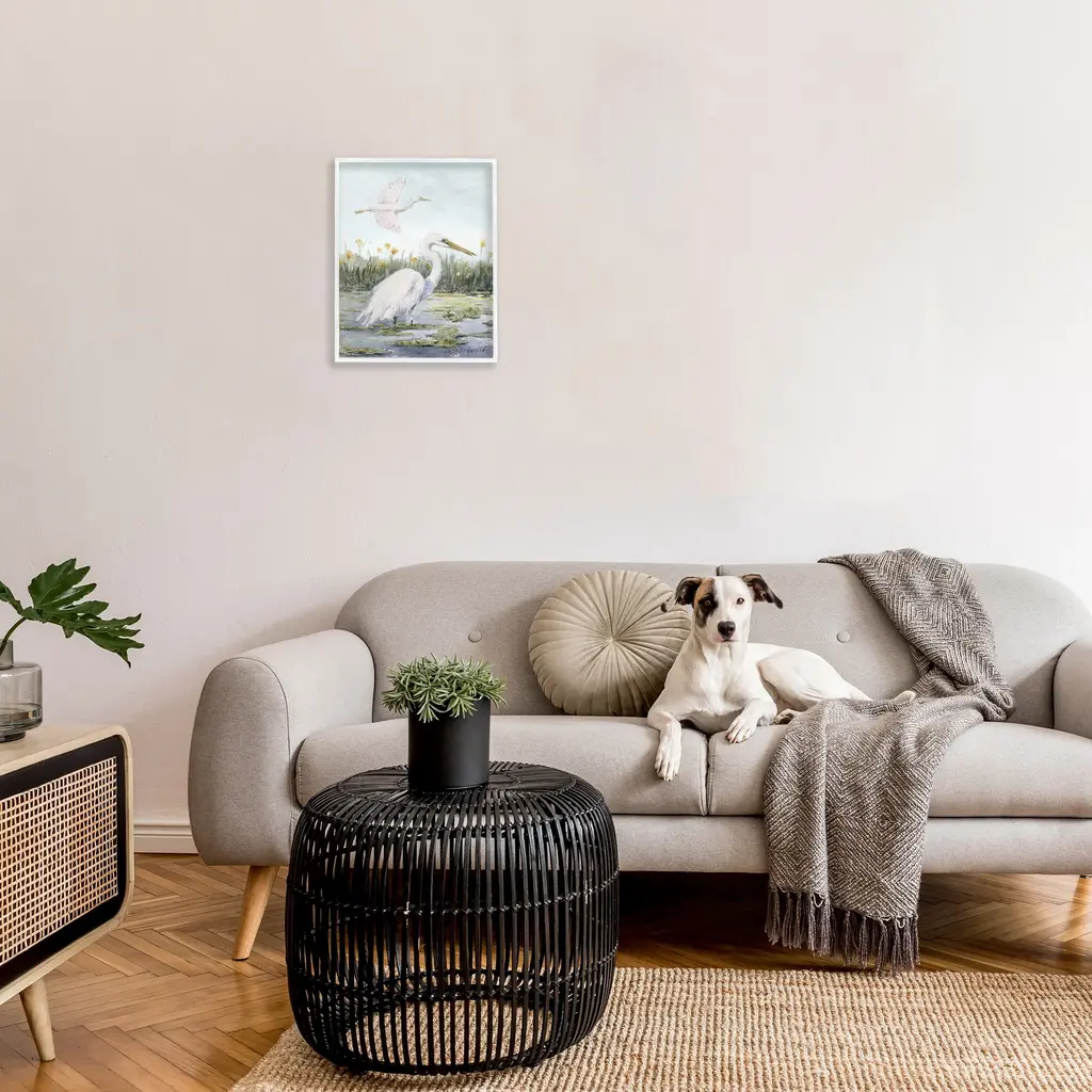 Add dimension to any room with our textured Framed Giclee Artwork. Our framed artwork is securely mounted into a 1.5-inch thick wood grain frame and ready to hang. Frames are available in three alluring styles: black, gray farmhouse and white. In addition, you should check out our oversized options if you want a statement piece. Stupell Wall Art is made in the USA.Features: Dimensions: 11 x 1.5 x 14 FramedFramed Giclee Products are available in the sizes 11"x14", 16"x20" or 24"x30". All Framed Giclee Products have a 1.5" Depth. Wall Art is Ready to Hang with Hardware Free Hanging. No installation required. For Easy Set Up Lean or Layer Artwork on Shelf or Against Wall.Our giclée prints are carefully mounted on a durable MDF backing, and then perfectly finished in a 1.5 inch thick woodgrain frame. Mounted frame colors include black, gray farmhouse and white. Made In USA.Artwork Relates To: Animal, Bird, Waterfowl, Crane Bird, Egret, Heron, Painting, Nature, Lake, Pond, LandscapeDesign by Lanie Loreth