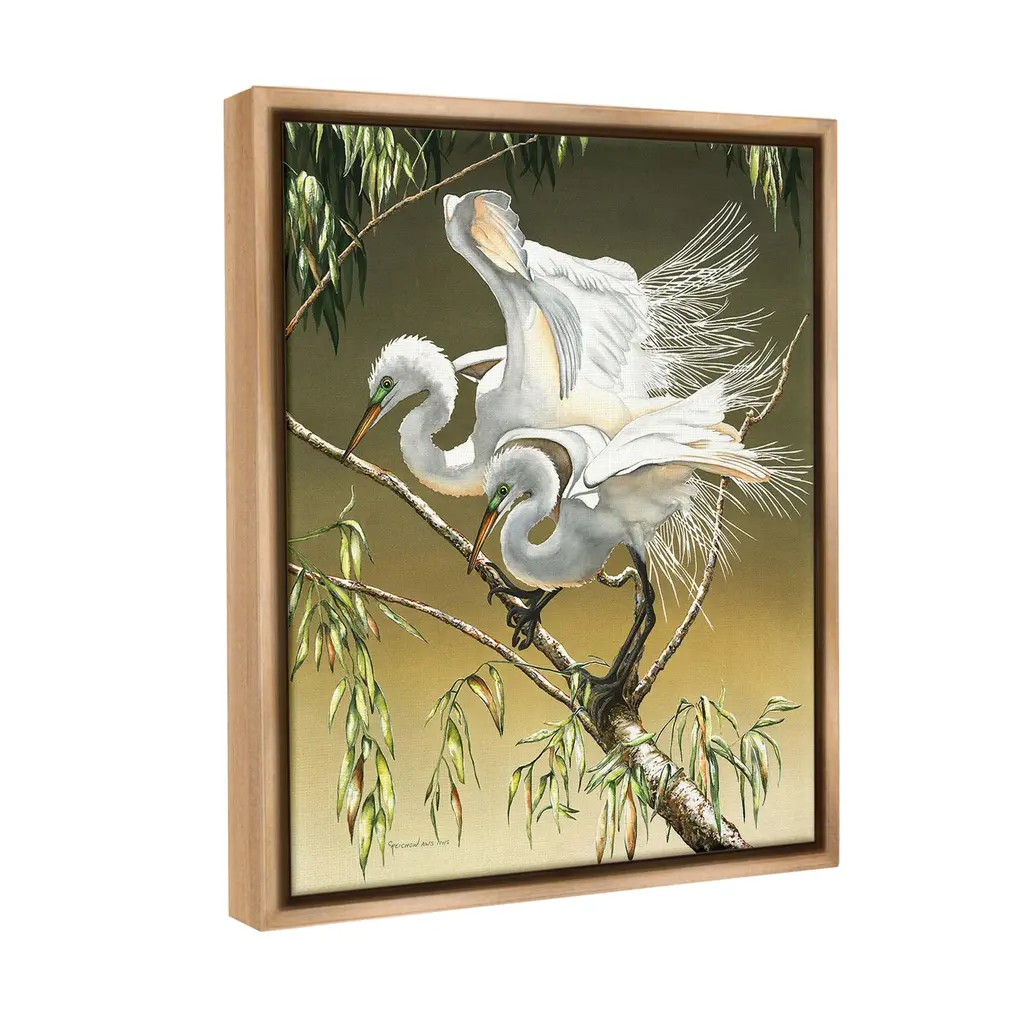 Stupell Egrets Perched On Branch Framed Floater Canvas Wall Art Design By Christine Reichow - 25 X 31 - Brown