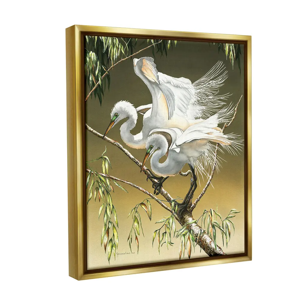Stupell Egrets Perched On Branch Framed Floater Canvas Wall Art Design By Christine Reichow - 25 X 31 - Gold