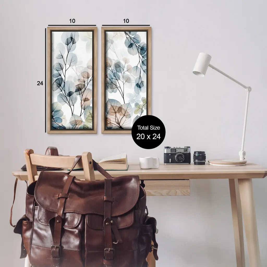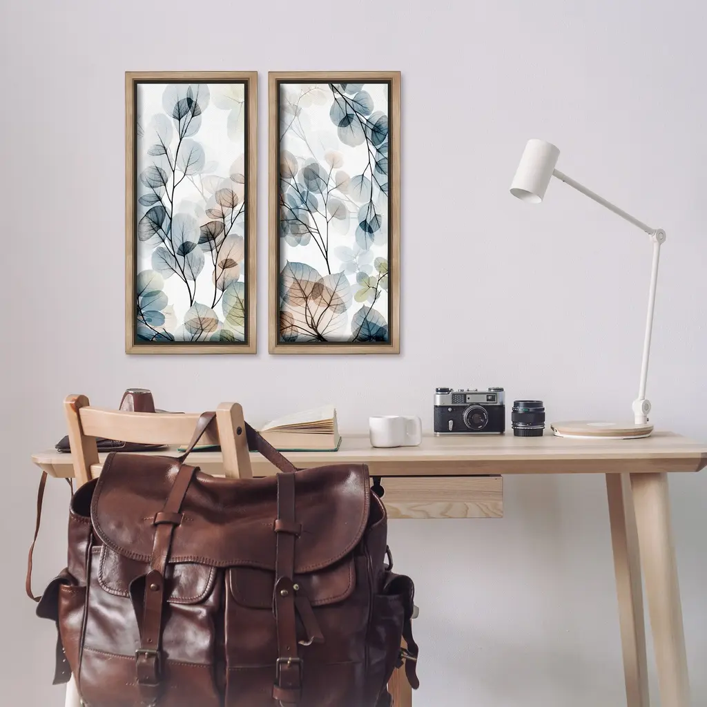 Elevate your home or office to the next level with Stupell Framed Floating Canvas Wall Art. Our premium hand-stretched canvas is mounted securely into a sturdy lightweight frame. The museum-style gap between the wrapped canvas and the box frame gives the illusion of floating artwork. Stupell Wall Art is made in the USA.Features: Dimensions: 2 Piece Set, Each Frame is 11 x 1.7 x 25Two Piece Floating Frame Canvas Products are available as 11"x25" or 14"x31" Panels. All Floating Frame Canvas Products have a 1.7" Depth.Wall Art is Ready to Hang with Hardware Free Hanging. No Installation required. For Easy Set Up Lean or Layer Artwork on Shelf or Against Wall. Artwork is Permently Fixed into the Frame.Our elevated 1.7" Thick Floating Frame is the perfect complement to our canvas style Wall Art. We use only the highest quality inks in house with industry leading printing solutions. Canvas is hand stretched over a durable wood foundation and then mounted securly into a Modern Box Frame. Made in the USA.Artwork Relates To: Floral, Pattern, Modern, Pattern, Abstract, Leaf, EucalyptusDesign by Albert Koetsier