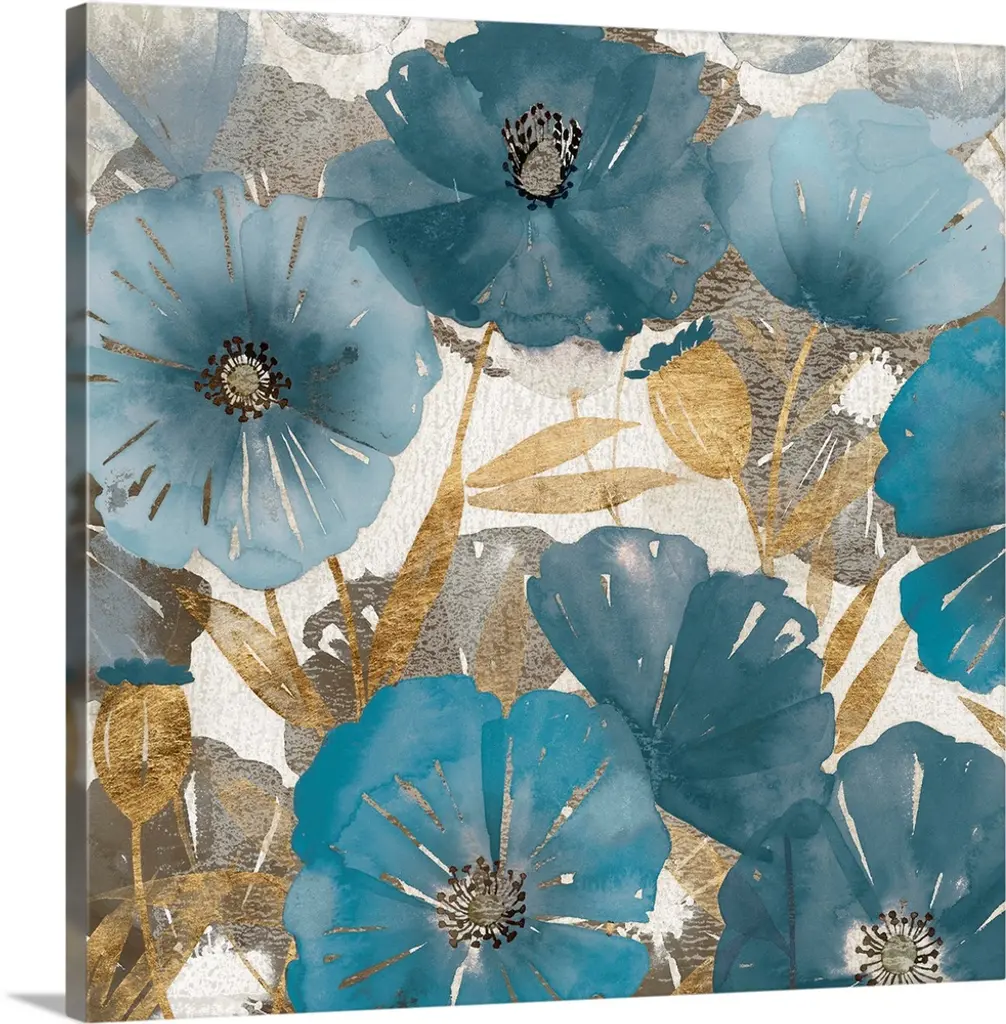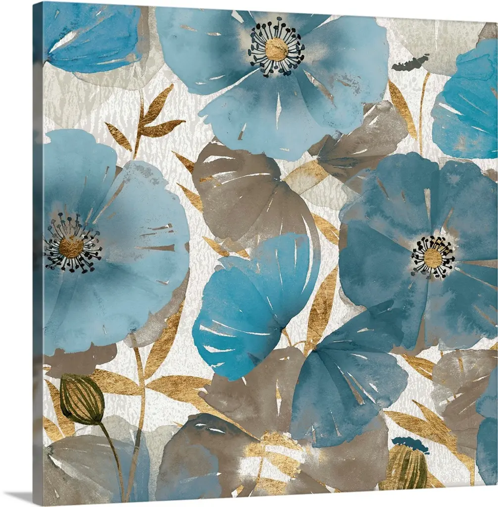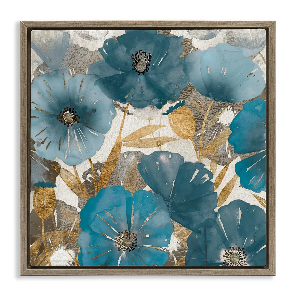 Stupell Elegant Blue Florals Abstract Framed Floater Canvas Wall Art Design By Studio W - 18 X 18 - Gold