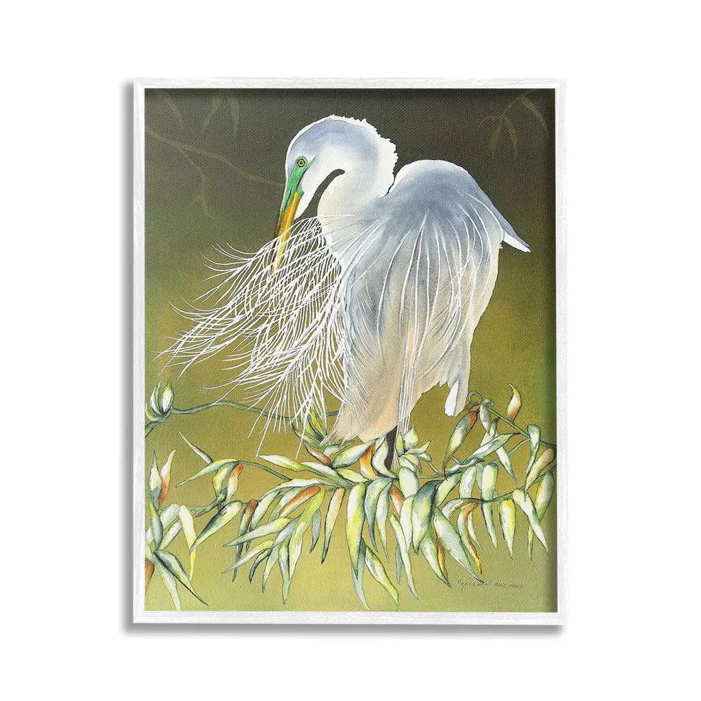 Add dimension to any room with our textured Framed Giclee Artwork. Our framed artwork is securely mounted into a 1.5-inch thick wood grain frame and ready to hang. Frames are available in three alluring styles: black, gray farmhouse and white. In addition, you should check out our oversized options if you want a statement piece. Stupell Wall Art is made in the USA.Features: Dimensions: 11 x 1.5 x 14 FramedFramed Giclee Products are available in the sizes 11"x14", 16"x20" or 24"x30". All Framed Giclee Products have a 1.5" Depth. Wall Art is Ready to Hang with Hardware Free Hanging. No installation required. For Easy Set Up Lean or Layer Artwork on Shelf or Against Wall.Our giclée prints are carefully mounted on a durable MDF backing, and then perfectly finished in a 1.5 inch thick woodgrain frame. Mounted frame colors include black, gray farmhouse and white. Made In USA.Artwork Relates To: Animal, Bird, Waterfowl, Egret, Heron, Leaf, Plant, Botanical, TraditionalDesign by Christine Reichow