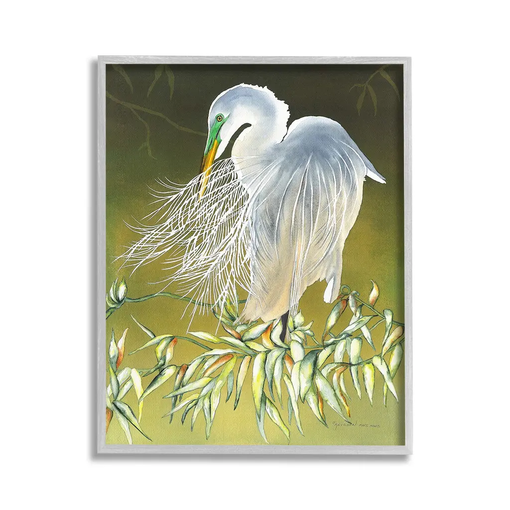 Add dimension to any room with our textured Framed Giclee Artwork. Our framed artwork is securely mounted into a 1.5-inch thick wood grain frame and ready to hang. Frames are available in three alluring styles: black, gray farmhouse and white. In addition, you should check out our oversized options if you want a statement piece. Stupell Wall Art is made in the USA.Features: Dimensions: 11 x 1.5 x 14 FramedFramed Giclee Products are available in the sizes 11"x14", 16"x20" or 24"x30". All Framed Giclee Products have a 1.5" Depth. Wall Art is Ready to Hang with Hardware Free Hanging. No installation required. For Easy Set Up Lean or Layer Artwork on Shelf or Against Wall.Our giclée prints are carefully mounted on a durable MDF backing, and then perfectly finished in a 1.5 inch thick woodgrain frame. Mounted frame colors include black, gray farmhouse and white. Made In USA.Artwork Relates To: Animal, Bird, Waterfowl, Egret, Heron, Leaf, Plant, Botanical, TraditionalDesign by Christine Reichow