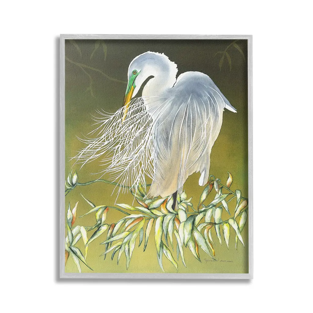 Add dimension to any room with our textured Framed Giclee Artwork. Our framed artwork is securely mounted into a 1.5-inch thick wood grain frame and ready to hang. Frames are available in three alluring styles: black, gray farmhouse and white. In addition, you should check out our oversized options if you want a statement piece. Stupell Wall Art is made in the USA.Features: Dimensions: 11 x 1.5 x 14 FramedFramed Giclee Products are available in the sizes 11"x14", 16"x20" or 24"x30". All Framed Giclee Products have a 1.5" Depth. Wall Art is Ready to Hang with Hardware Free Hanging. No installation required. For Easy Set Up Lean or Layer Artwork on Shelf or Against Wall.Our giclée prints are carefully mounted on a durable MDF backing, and then perfectly finished in a 1.5 inch thick woodgrain frame. Mounted frame colors include black, gray farmhouse and white. Made In USA.Artwork Relates To: Animal, Bird, Waterfowl, Egret, Heron, Leaf, Plant, Botanical, TraditionalDesign by Christine Reichow