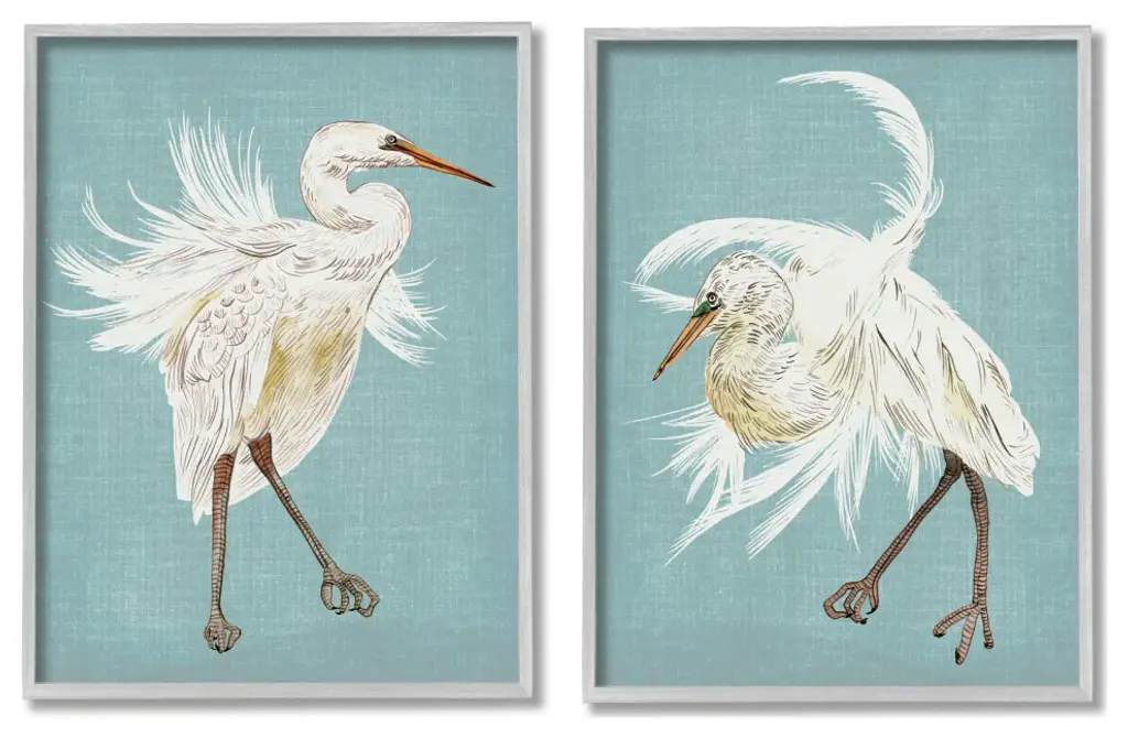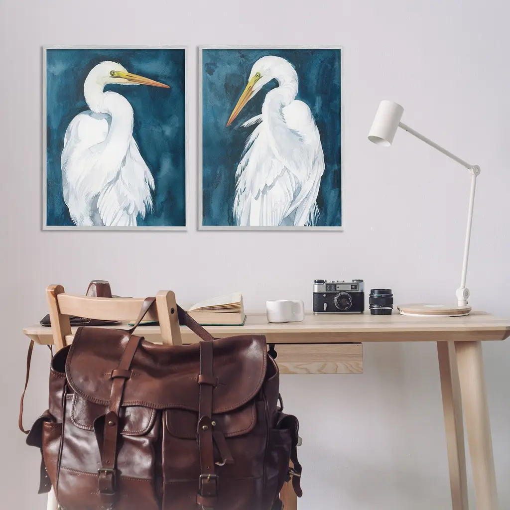 Fill any space in your home or office with our Framed Wall Art Sets. Our framed artwork is securely mounted into a 1.5-inch thick wood grain frame and ready to hang. Frames are available in three alluring styles: black, gray farmhouse and white. Stupell Wall Art is made in the USA.Features: Dimensions: 2 Piece Set, Each Panel is 11 x 1.5 x 14 FramedTwo Piece Framed Giclee Sets are available as 11"x14", 16"x20" or 24"x30" Panels. All Framed Giclee Products have a 1.5" Depth.Wall Art is Ready to Hang with Hardware Free Hanging. No installation required. For Easy Set Up Lean or Layer Artwork on Shelf or Against Wall.Curated Wall Art Sets make it easy for you complete the theme for any room. Our giclée prints are carefully mounted on a durable MDF backing, and then perfectly finished in a 1.5 inch thick woodgrain frame. Mounted frame colors include black, gray farmhouse and white. Made In USA.Artwork Relates To: Animal, Bird, Waterfowl, Crane Bird, Nature, Heron, Egret, Portrait, Nautical, BeachDesign by Grace Popp
