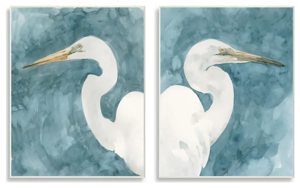 Fill any space in your home or office with our Framed Wall Art Sets. Our framed artwork is securely mounted into a 1.5-inch thick wood grain frame and ready to hang. Frames are available in three alluring styles: black, gray farmhouse and white. Stupell Wall Art is made in the USA.Features: Dimensions: 2 Piece Set, Each Panel is 11 x 1.5 x 14 FramedTwo Piece Framed Giclee Sets are available as 11"x14", 16"x20" or 24"x30" Panels. All Framed Giclee Products have a 1.5" Depth.Wall Art is Ready to Hang with Hardware Free Hanging. No installation required. For Easy Set Up Lean or Layer Artwork on Shelf or Against Wall.Curated Wall Art Sets make it easy for you complete the theme for any room. Our giclée prints are carefully mounted on a durable MDF backing, and then perfectly finished in a 1.5 inch thick woodgrain frame. Mounted frame colors include black, gray farmhouse and white. Made In USA.Artwork Relates To: Animal, Bird, Waterfowl, Crane Bird, Nature, Heron, Egret, Portrait, Nautical, BeachDesign by Grace Popp