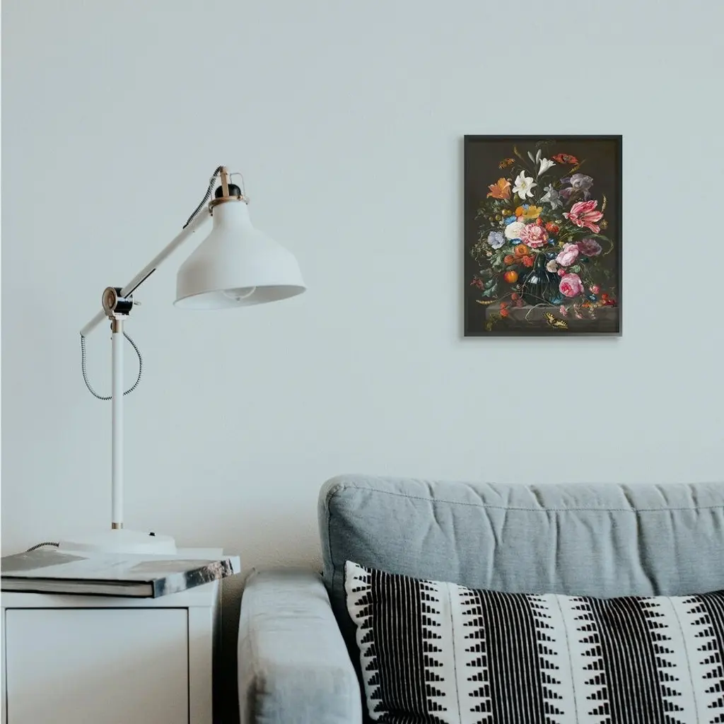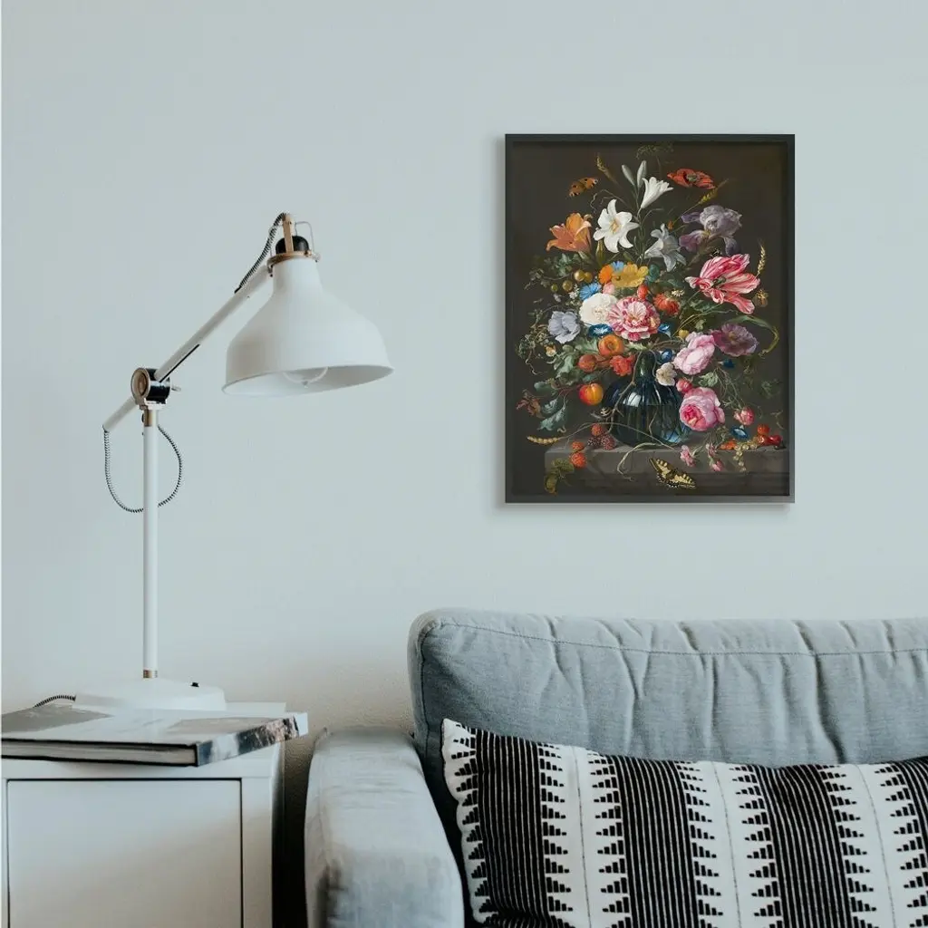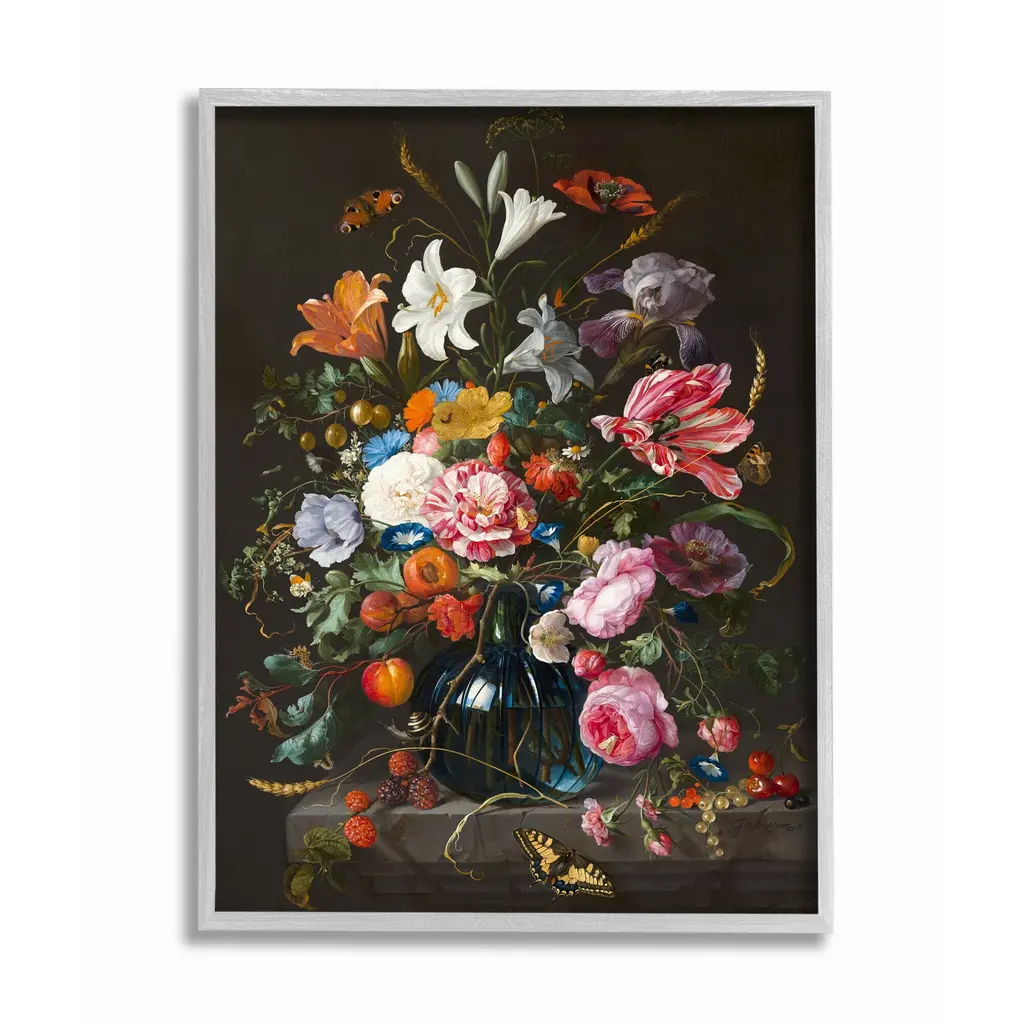 Stupell Elegant Floral Bouquet Butterfly And Fruit Details Framed Wall Art - Grey - 11 X 14 - Black