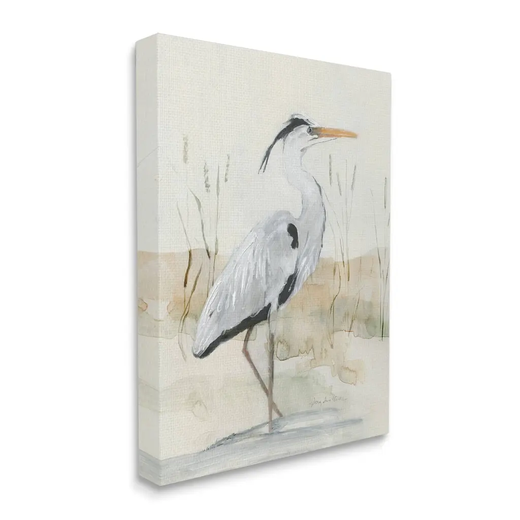 We create our stretched canvas to the highest standards. Using only the highest quality inks and canvas on Mimaki printers, we hand-cut and stretch each piece over a 1.5-inch thick wooden frame for hanging. As a result, the art comes ready to hang on the sturdy ledge with no installation required. Stupell Wall Art is made in the USA.Features: Dimensions: 16 x 1.5 x 20 InchesStretched Canvas Sizes Include Standard: 16 x 1.5 x 20 Large: 20 x 1.5 x 30 X-Large: 30 x 1.5 x 40 Oversized: 36 x 1.5 x 48Wall Art is Ready to Hang - No Installation or Hardware Needed. For Easy Set Up Lean or Layer Artwork on Shelf or Against Wall.Our stretched canvas is created with the highest standards. We use only the highest quality inks and canvas on our in house Mimaki printers, and then hand cut and stretch each piece over a 1.5 inch thick wooden frame for hanging. Made In USA.Artwork Relates To: Animal, Bird, Waterfowl, Crane Bird, Heron, PaintingDesign by Sally Swatland