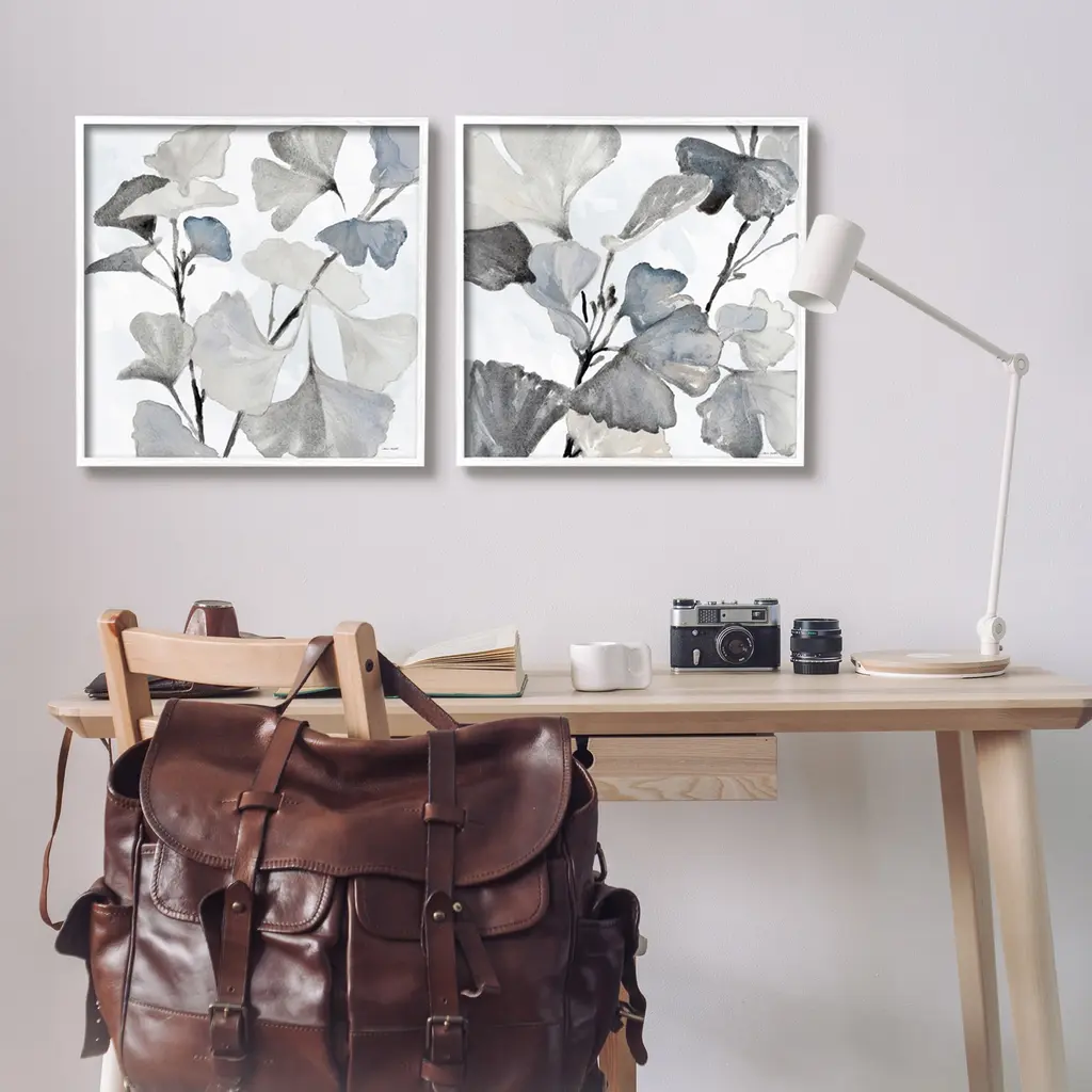 Stupell Elegant Monochromatic Plant Leaves Botanical Illustration Framed 2 Piece Wall Art - White - 24 X 24 - White